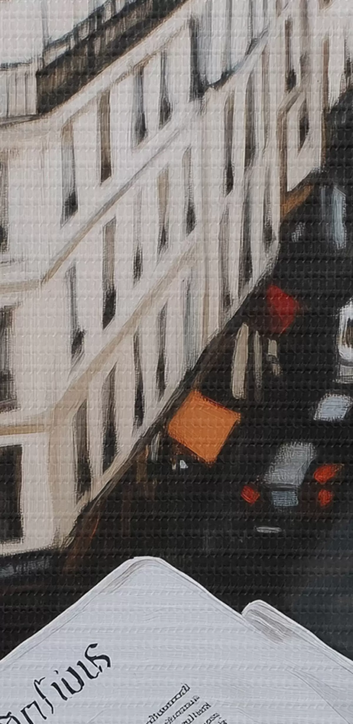 Obraz Ranní káva s croissanty, městská ulice, architektonický, olejový styl Č. s43891
