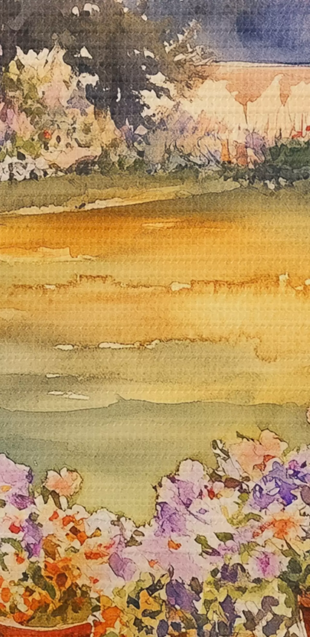 Obraz Květiny ve vesnické zahradě, barvy západu slunce, akvarel Č. s44019