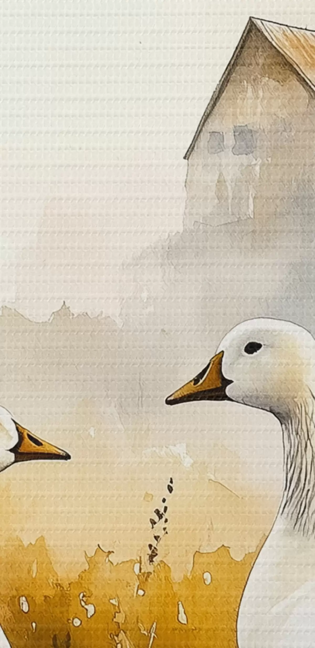 Obraz Akvarelový styl husy v poli, vesnice, rustikální Č. s44024