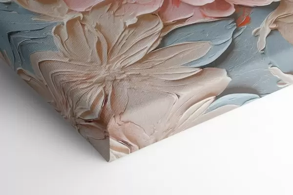 Obraz Bílé a růžové květiny na modrém pozadí ve stylu olejomalby Č. s44074