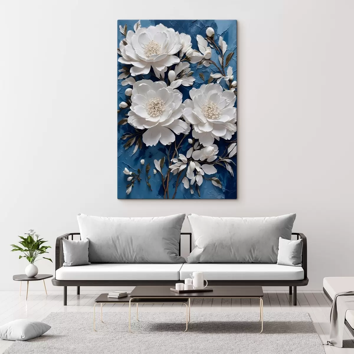Obraz Bílé květiny na modrém pozadí olejomalby Č. s44091
