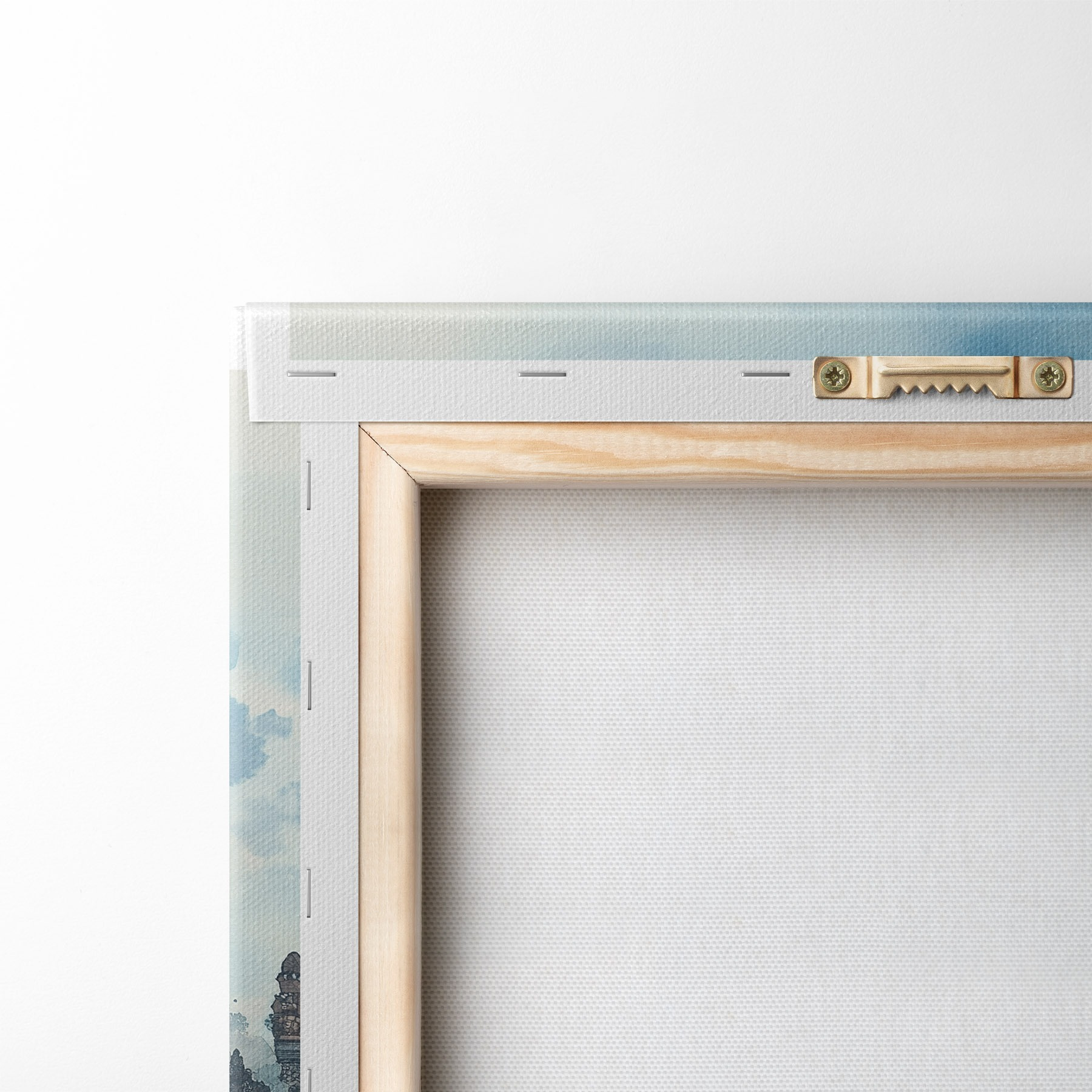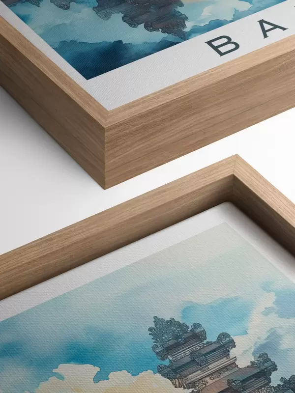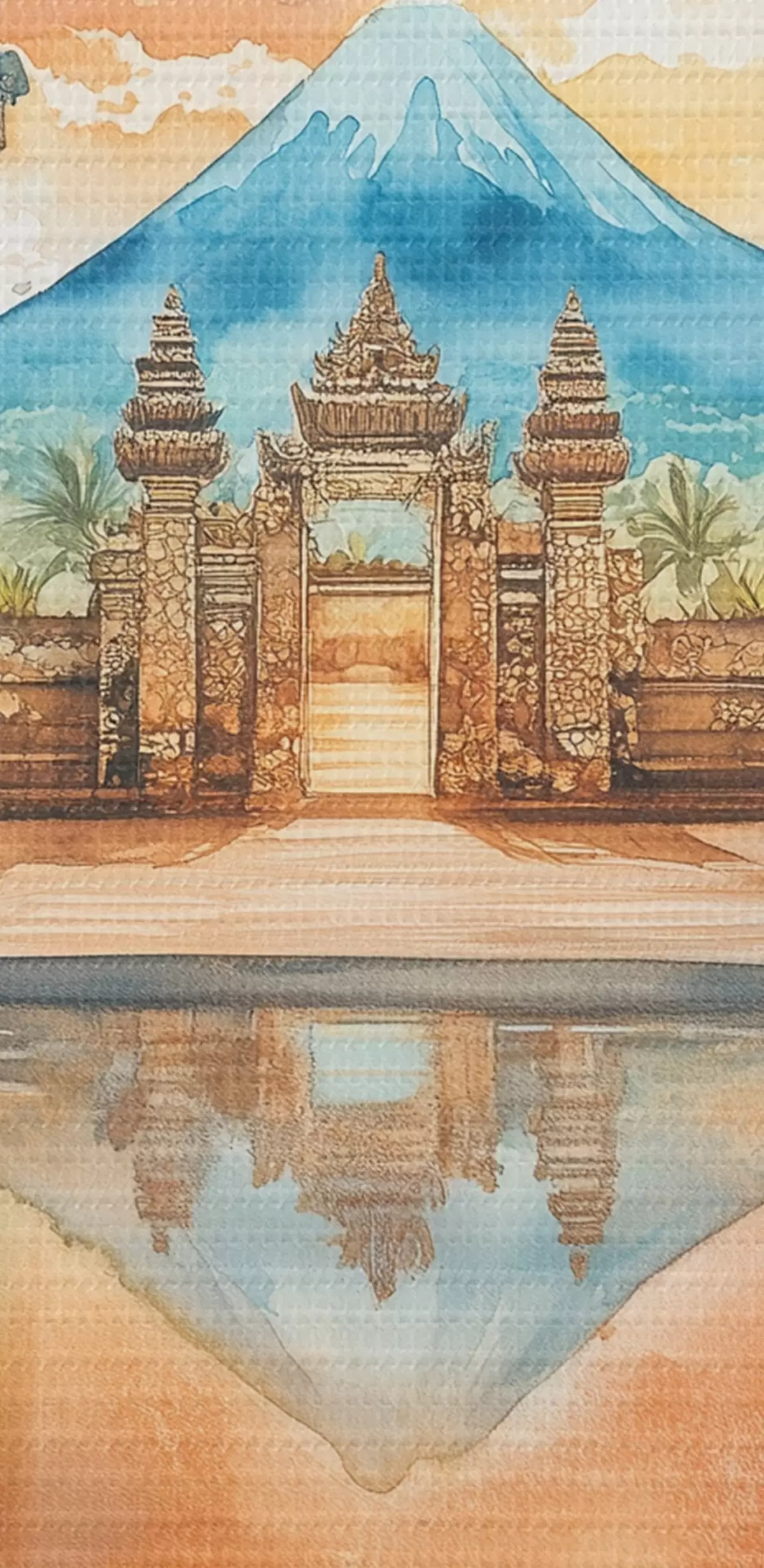 Obraz Estetika Bali, chrám, obloha při západu slunce, tropická příroda, styl akvarelu Č. s44149