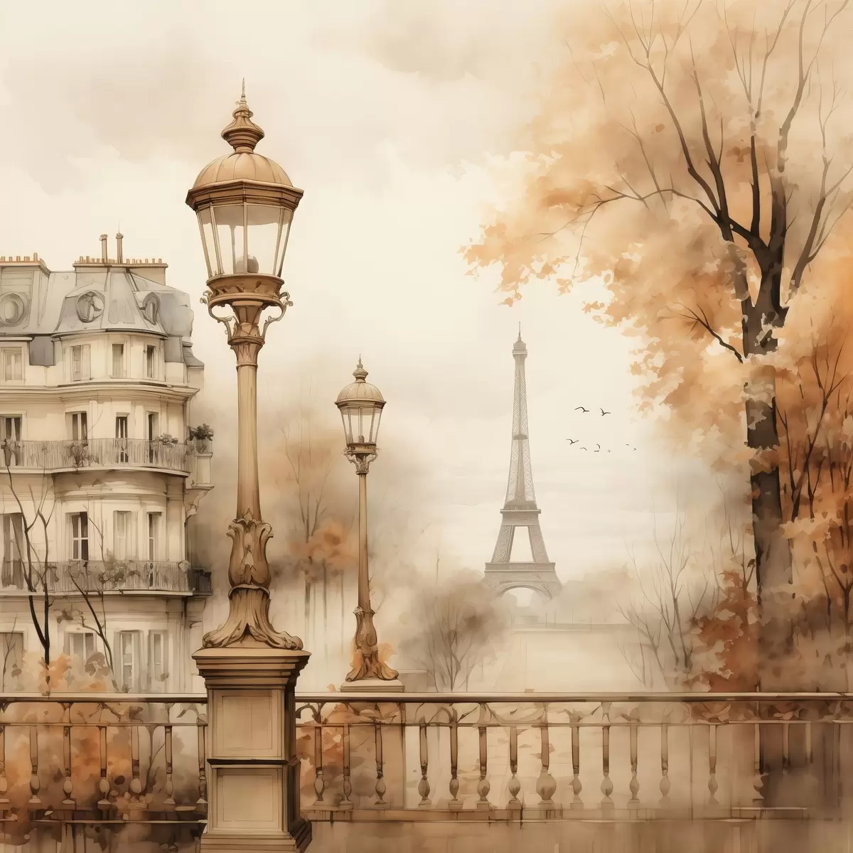Obraz Podzim v Paříži ve stylu atmosférického akvarelu Č. s44239