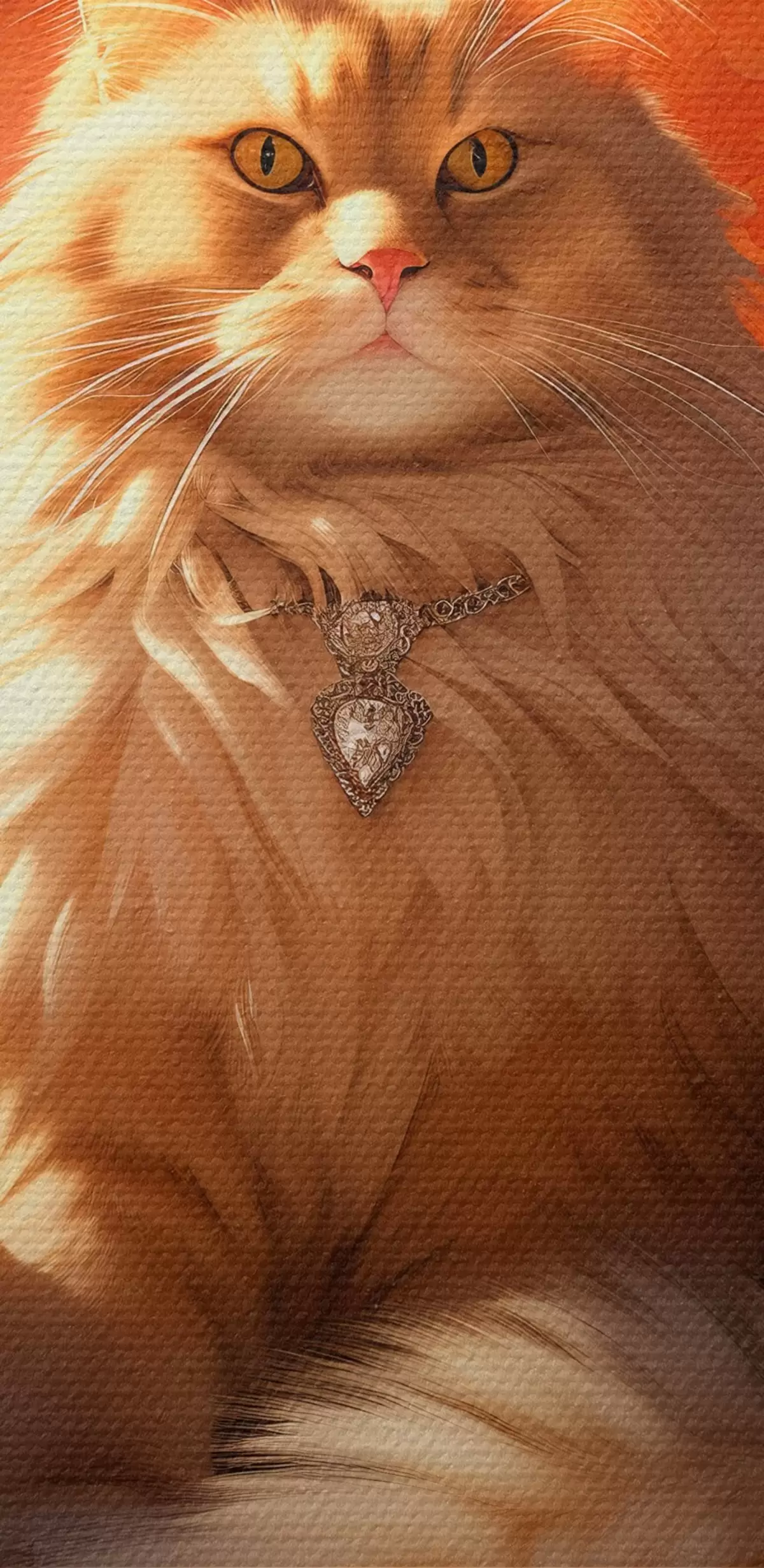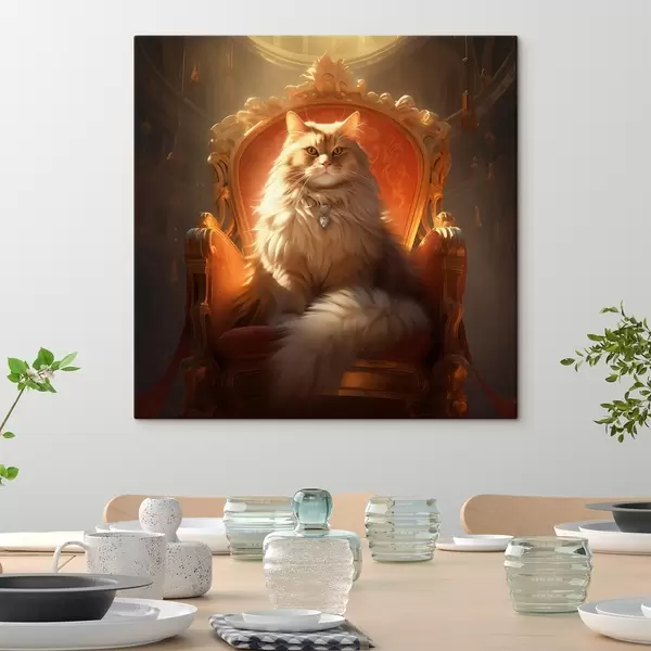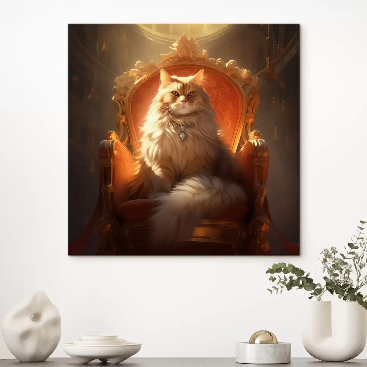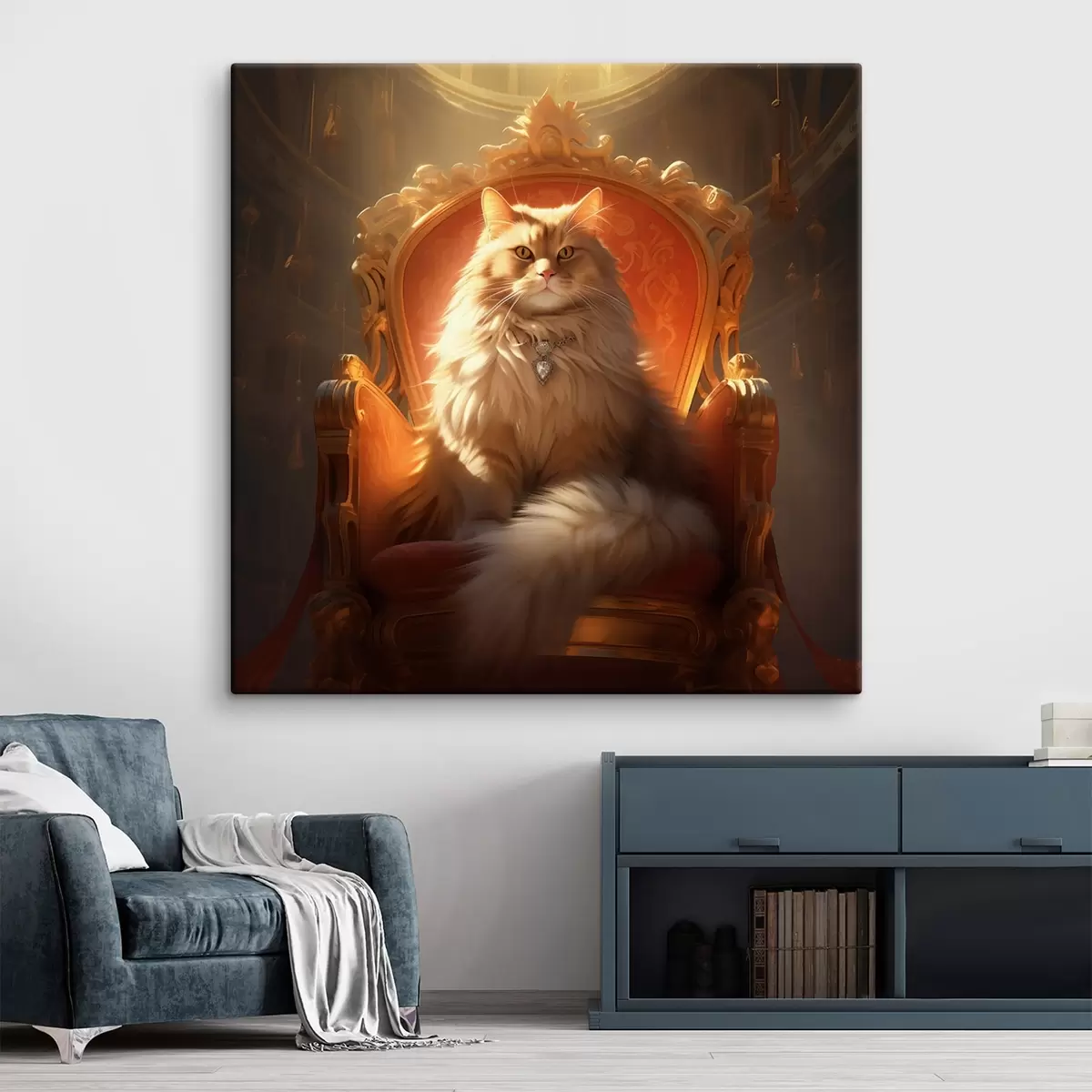 Obraz Královská kočka s jantarovýma očima na trůnu v paprscích slávy v barokním stylu Č. s44250