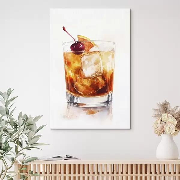 Obraz Pomerančový koktejl s ledem a třešní, akvarelový styl Č. s44303