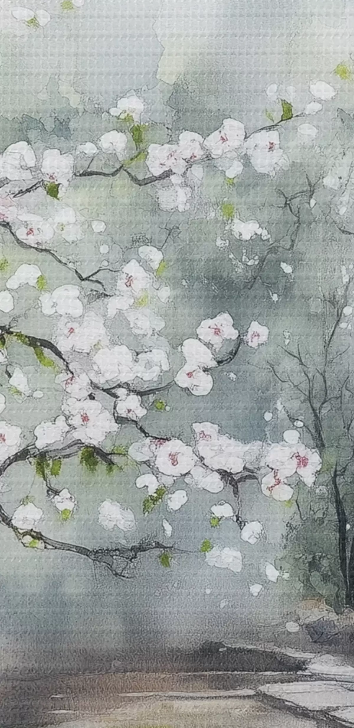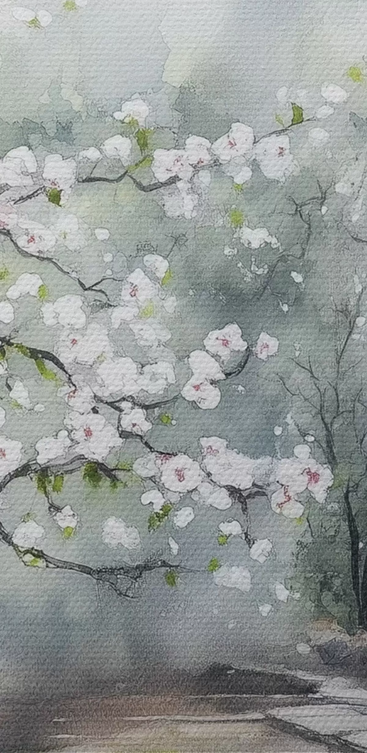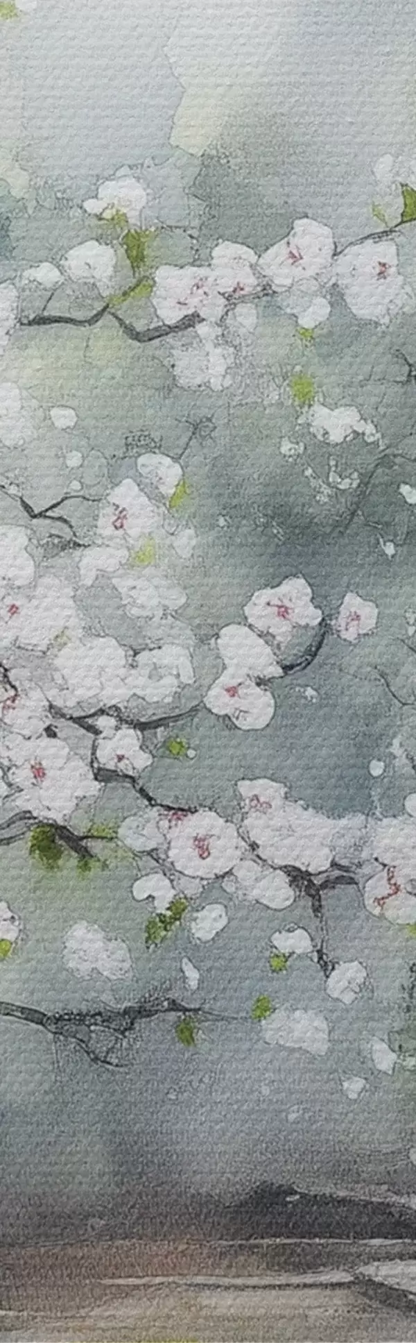 Obraz Japonská zahrada s třešní a domem, orientální, akvarel Č. s44309