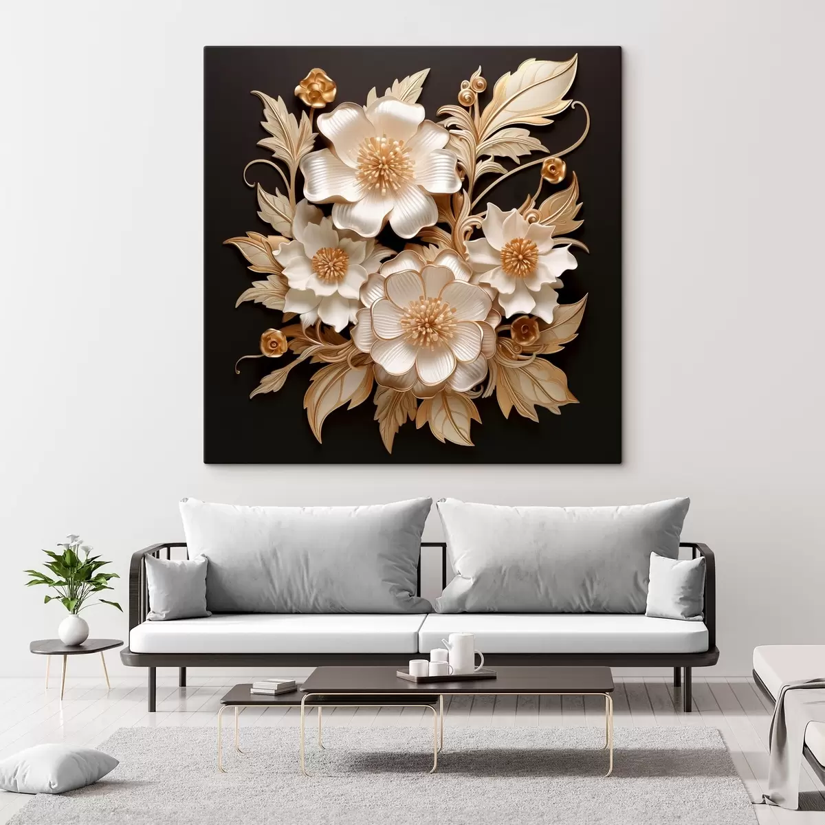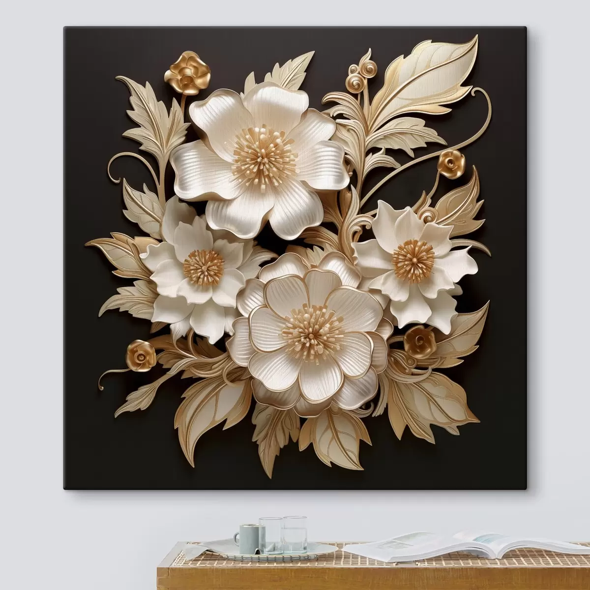 Obraz Objemné bílé květy na černém pozadí Č. s44340