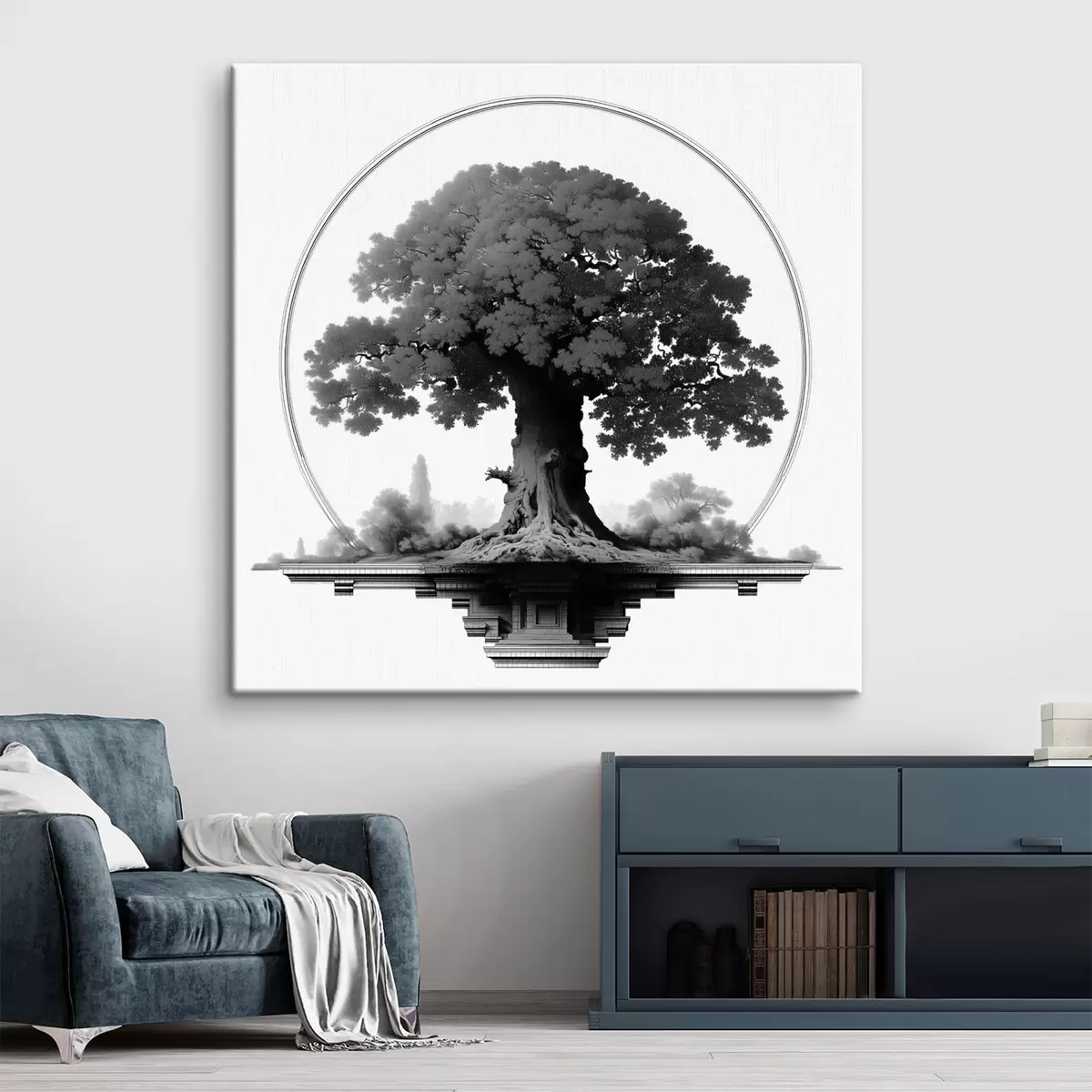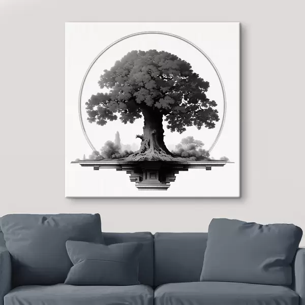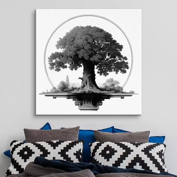 Obraz Jednobarevný strom s mohutným kmenem a rozlehlou korunou Č. s44346