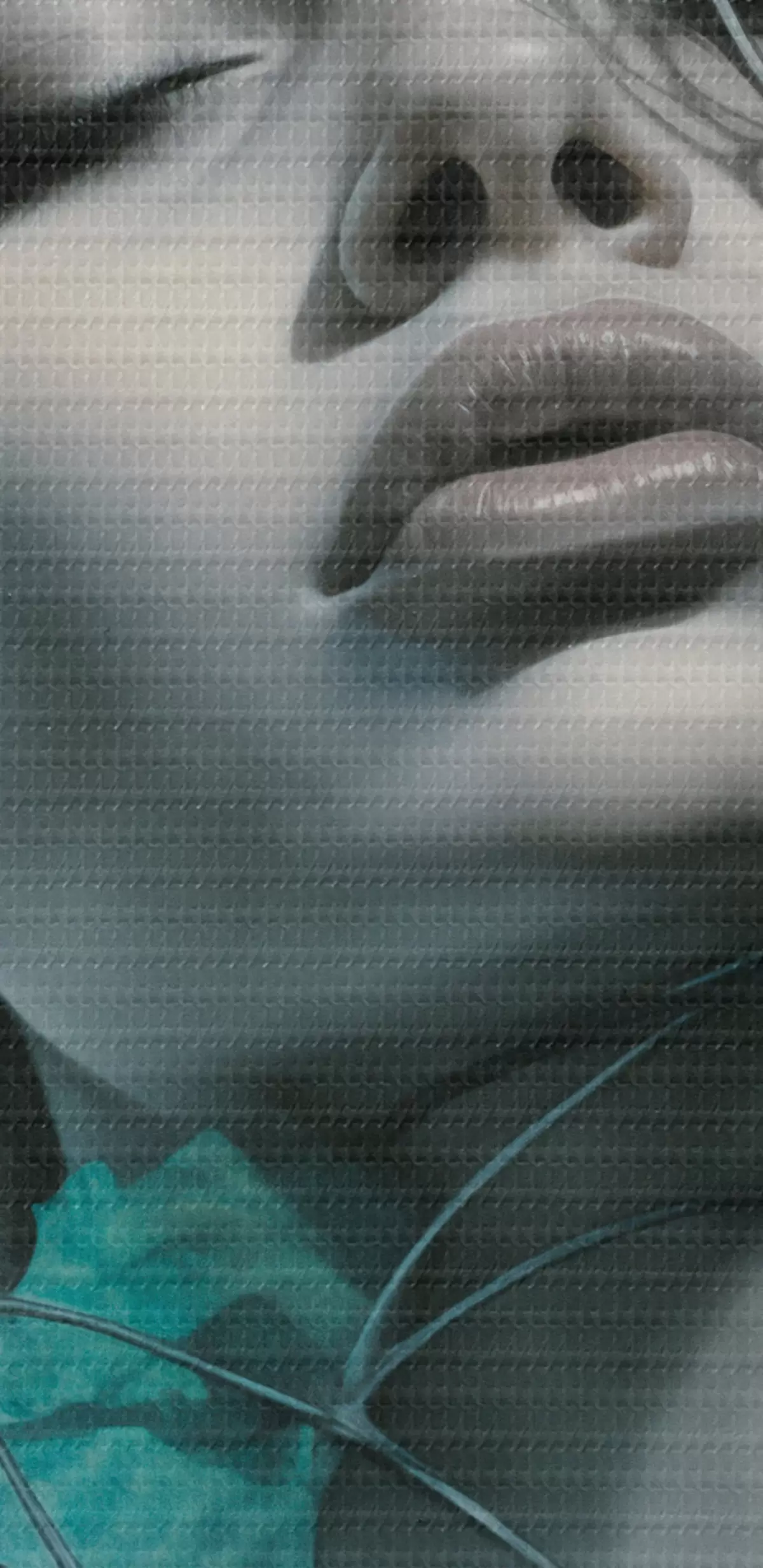 Obraz Portrét ženy se zavřenýma očima, obklopené zelenými listy a větvemi Č. s44399