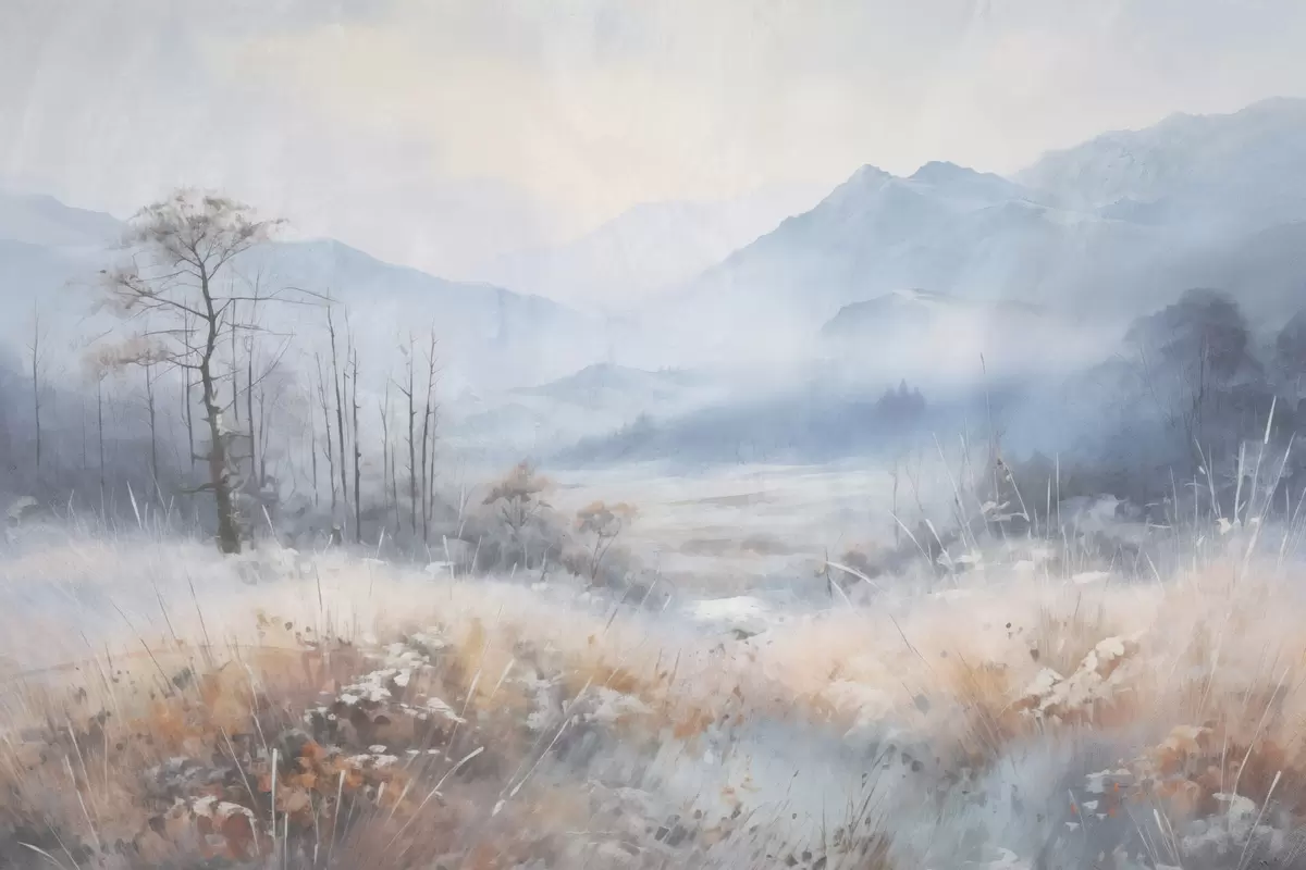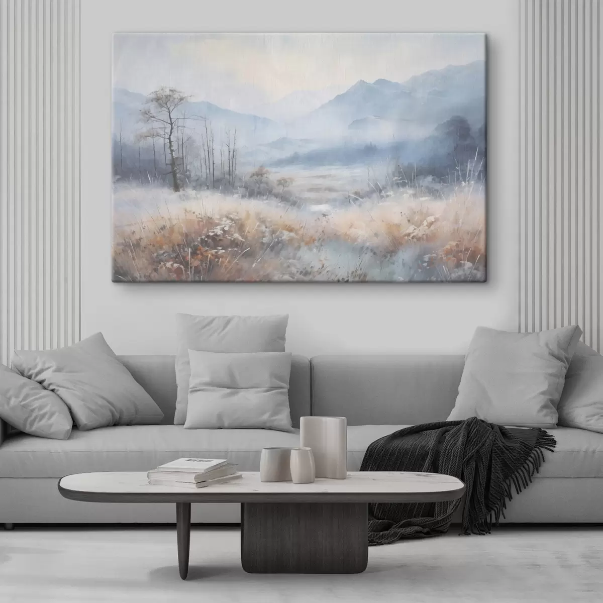 Obraz Texturovaná krajina s horami, suchou trávou a lesem, tlumené barvy Č. s44402