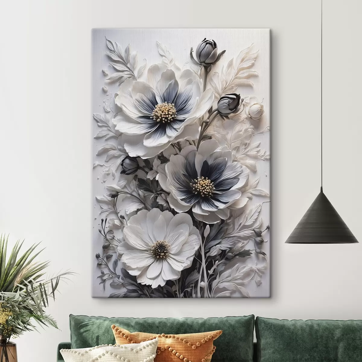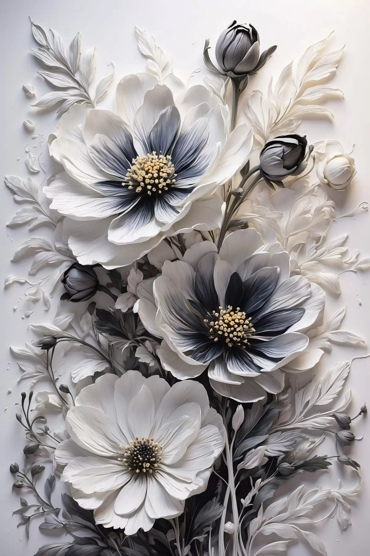 Obraz Černé a bílé květiny na bílém pozadí Č. s44446