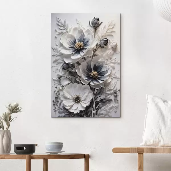 Obraz Černé a bílé květiny na bílém pozadí Č. s44446
