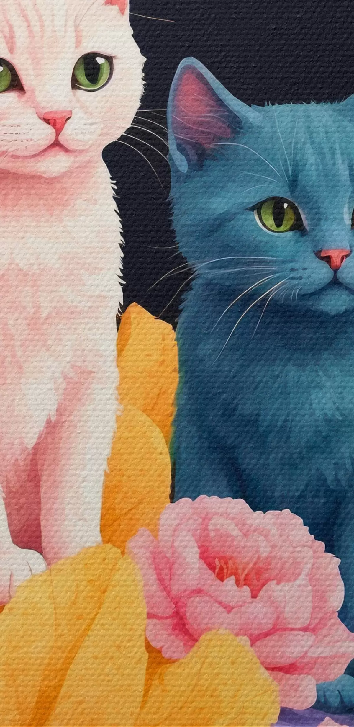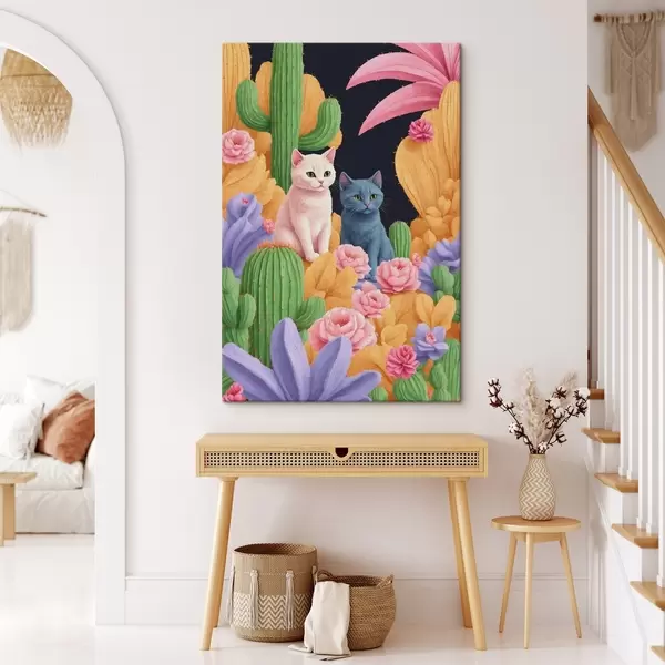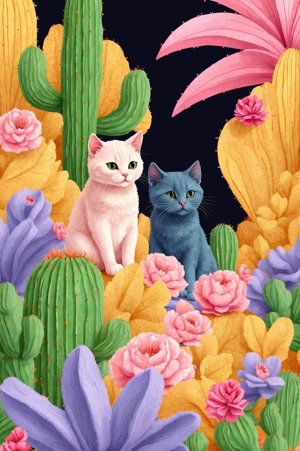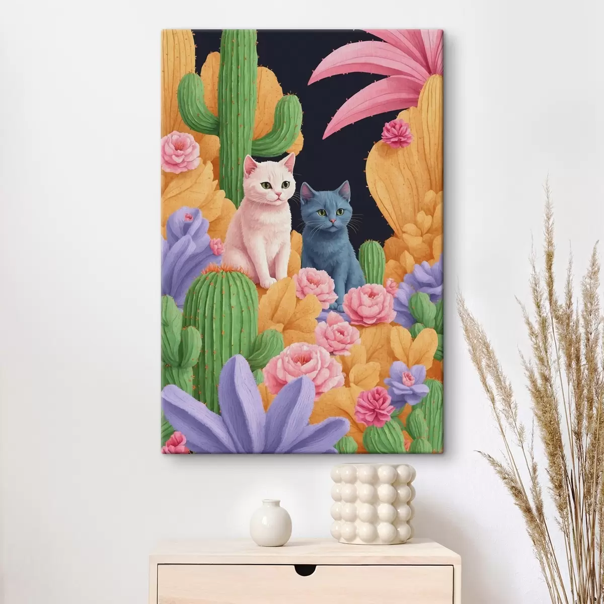 Obraz Umělé kočky mezi květinami a kaktusy Č. s44452