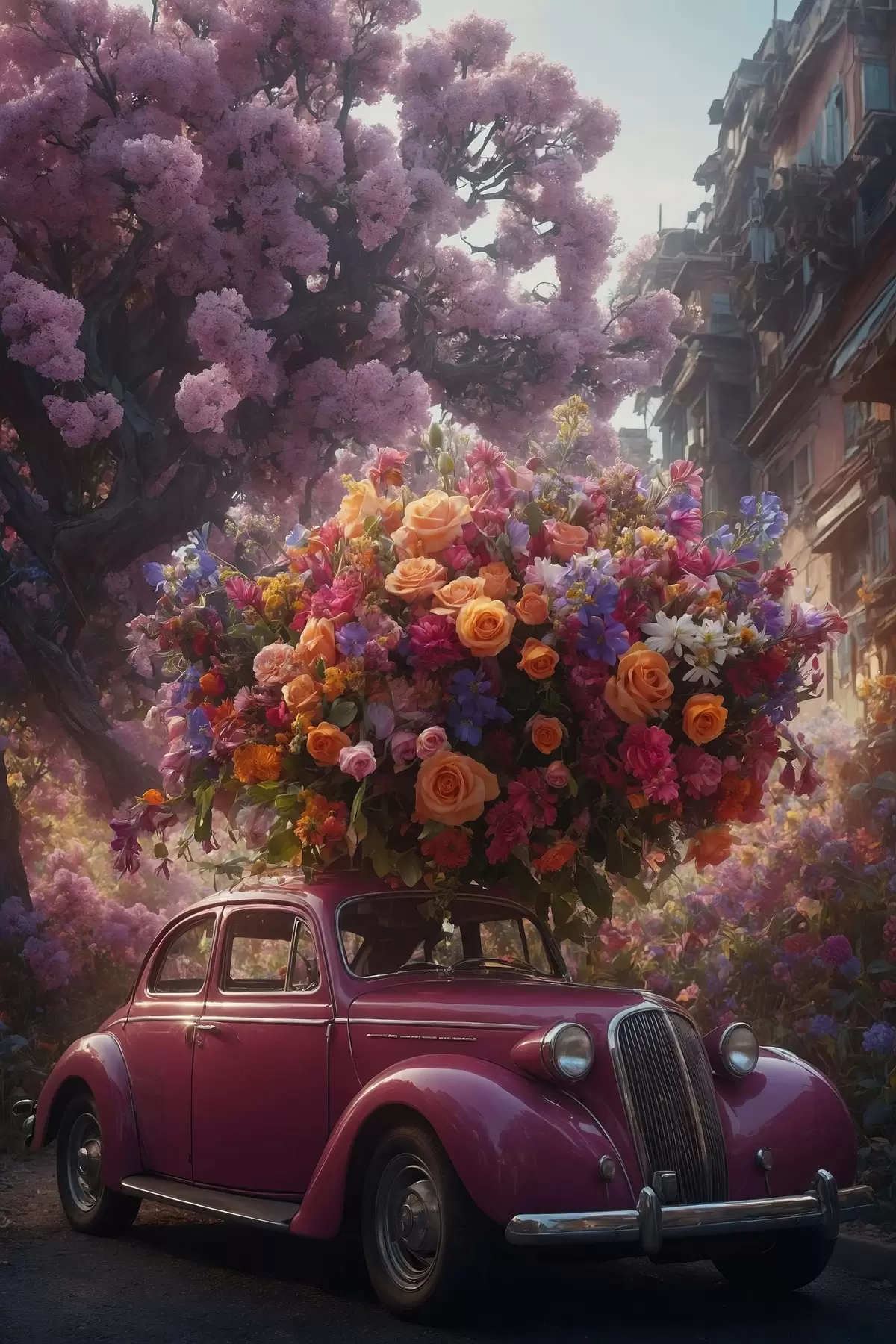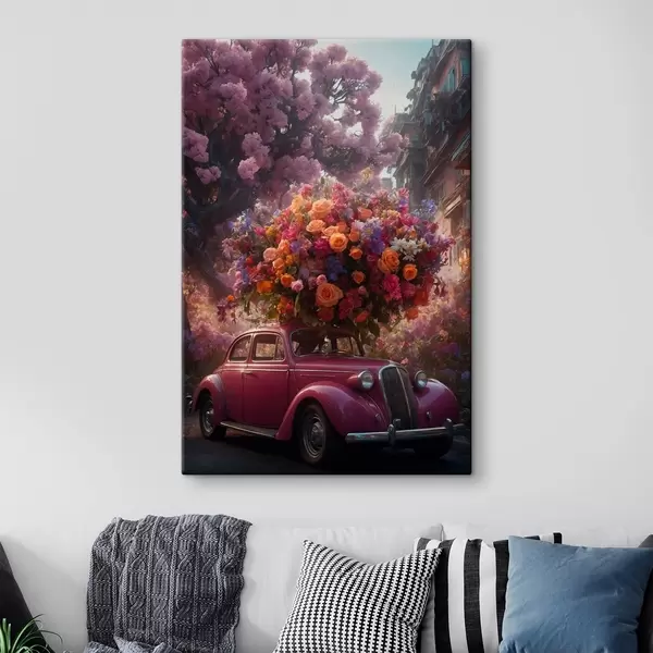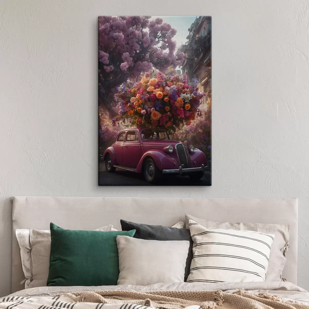 Obraz Retro auto a obrovská kytice květin Č. s44471