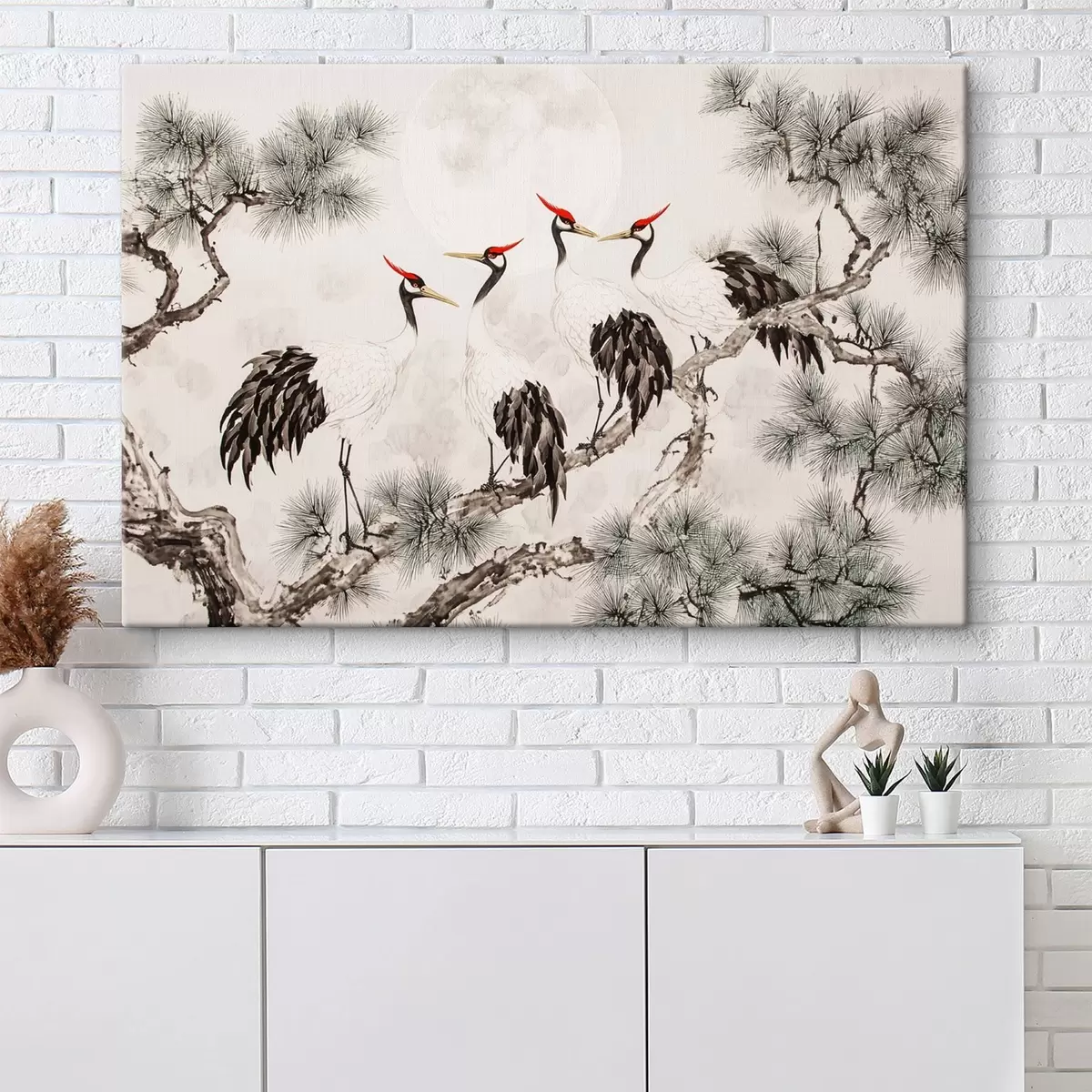 Obraz Čínské umění s jeřáby a borovicemi, orientální styl, příroda Č. s44503
