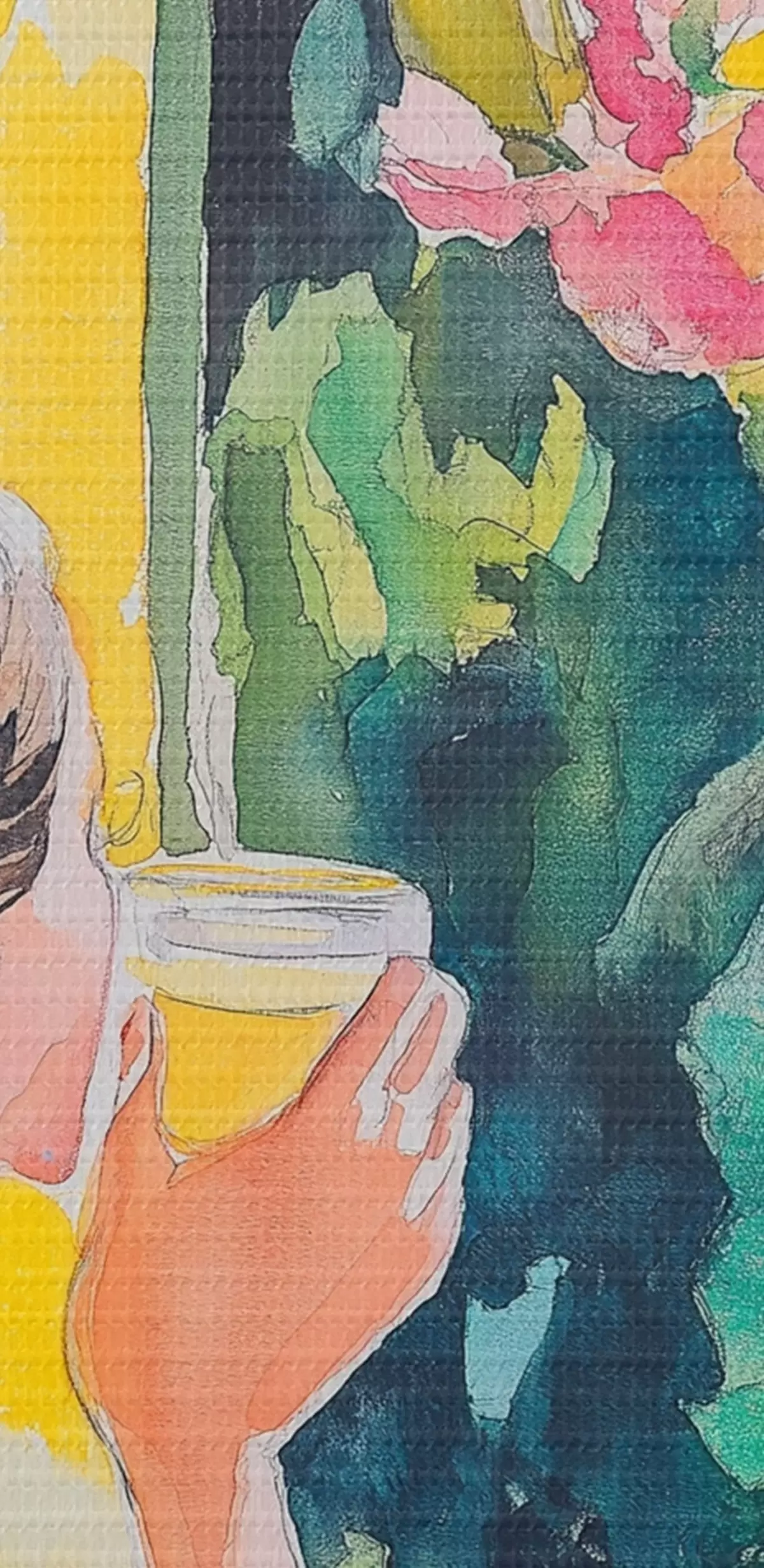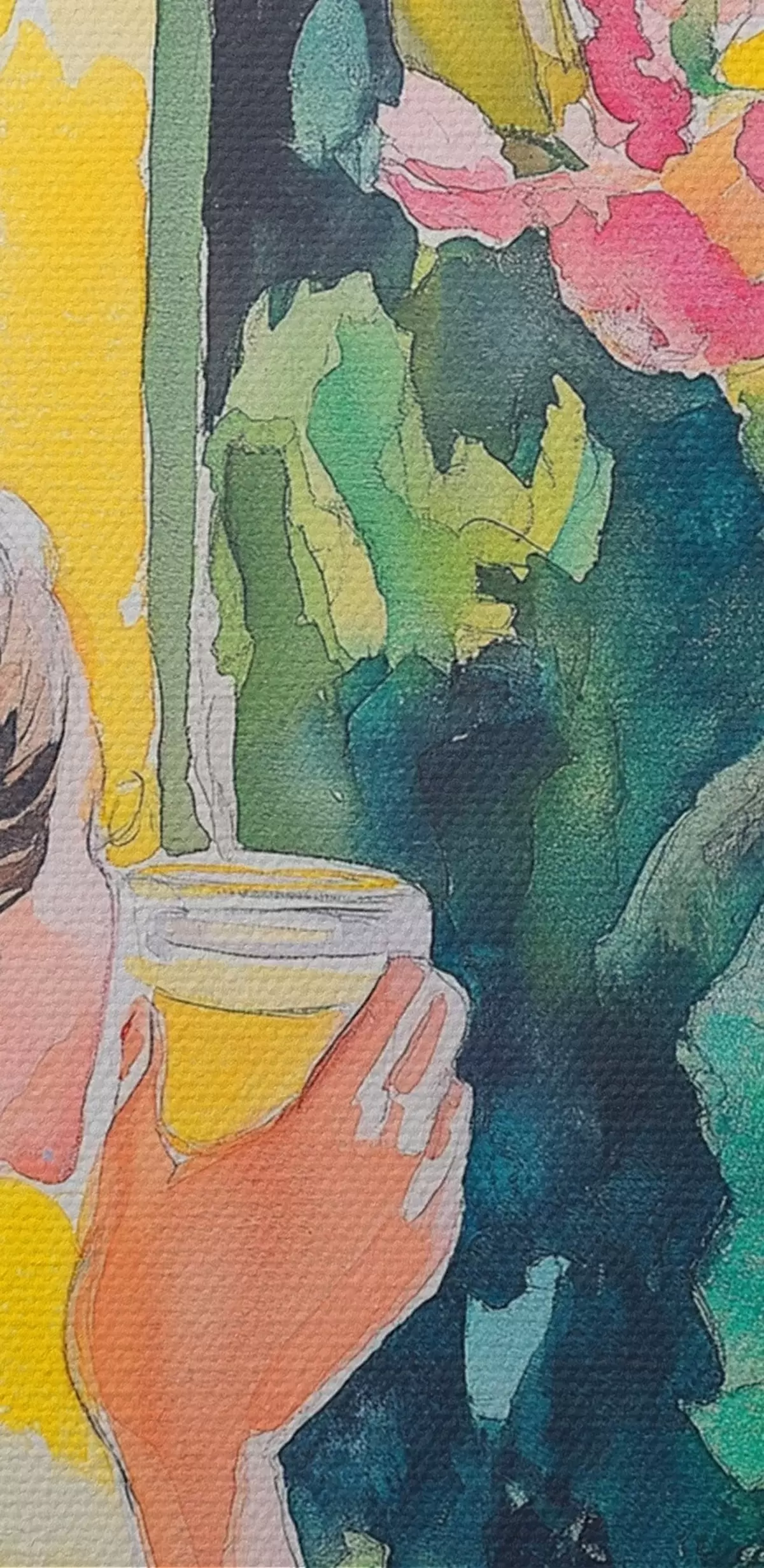 Obraz Letní atmosféra, dívka v kavárně, limoncello, Itálie, akvarel Č. s44505