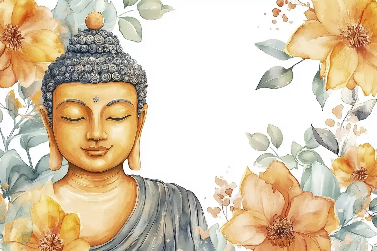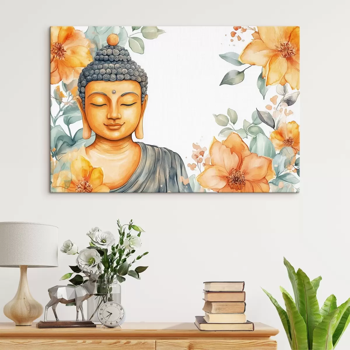Obraz Buddha obklopený oranžovými květy, akvarelový styl Č. s44508