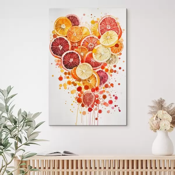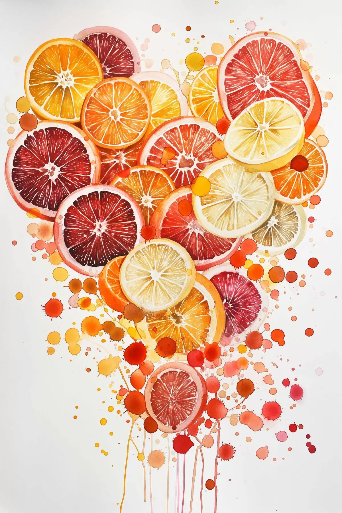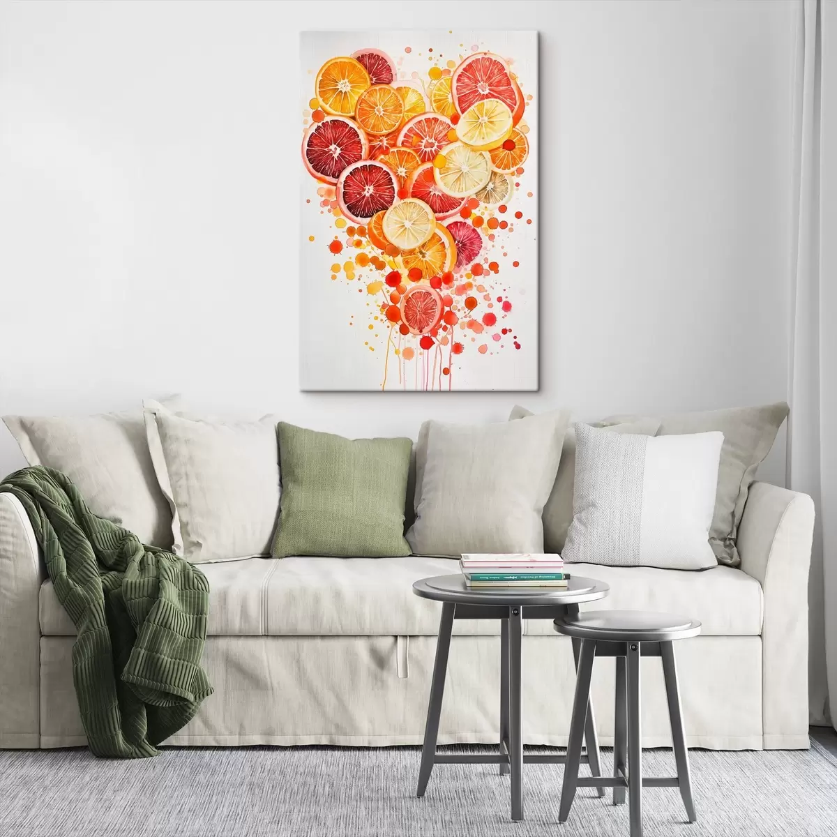 Obraz Hravá kompozice plátků citronu, pomeranče, grapefruitu a limetky ve tvaru srdce Č. s44545