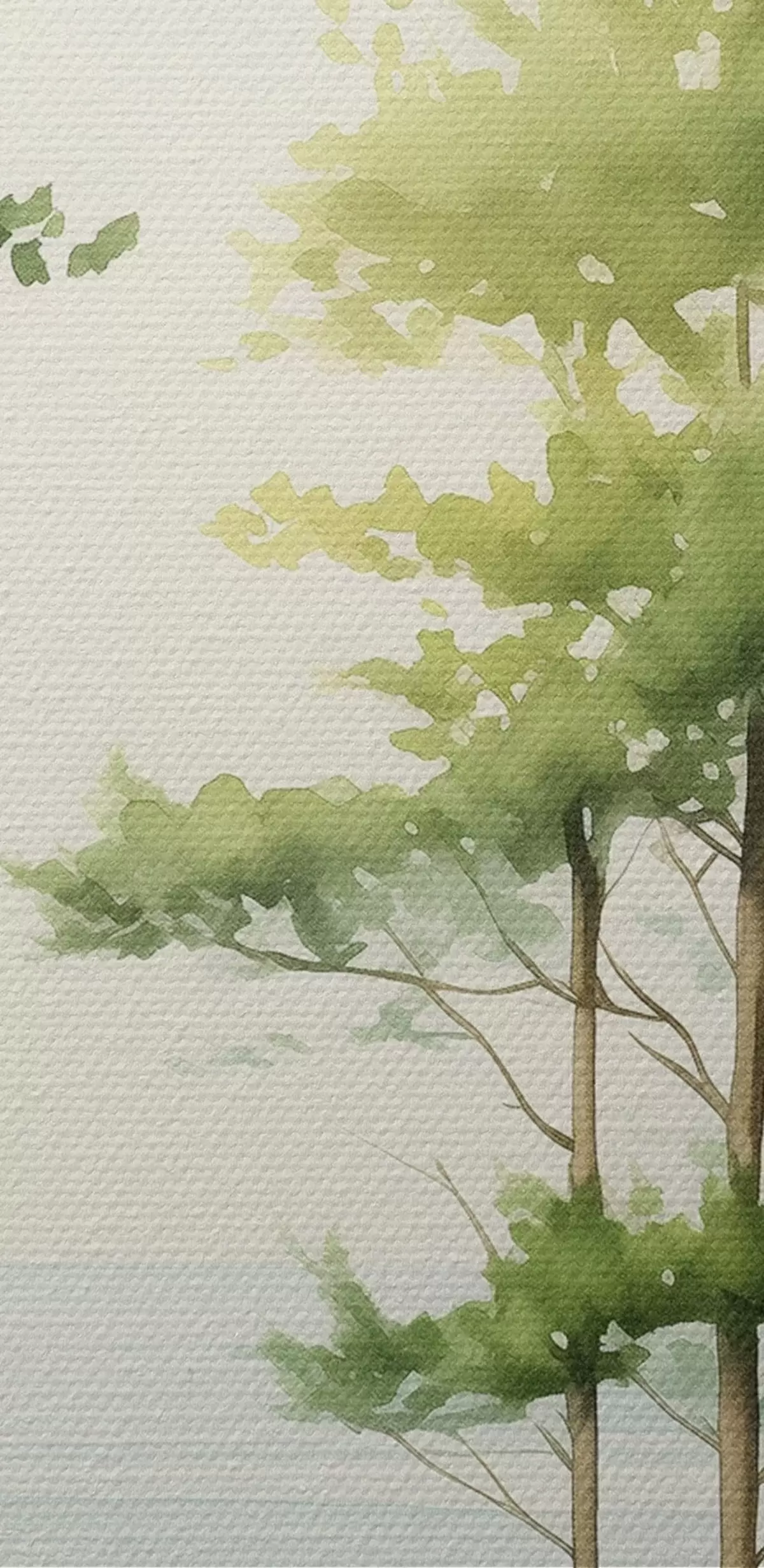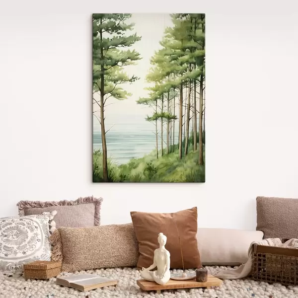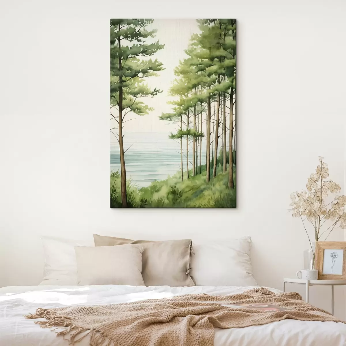 Obraz Zelený borový les u moře, akvarel Č. s44603
