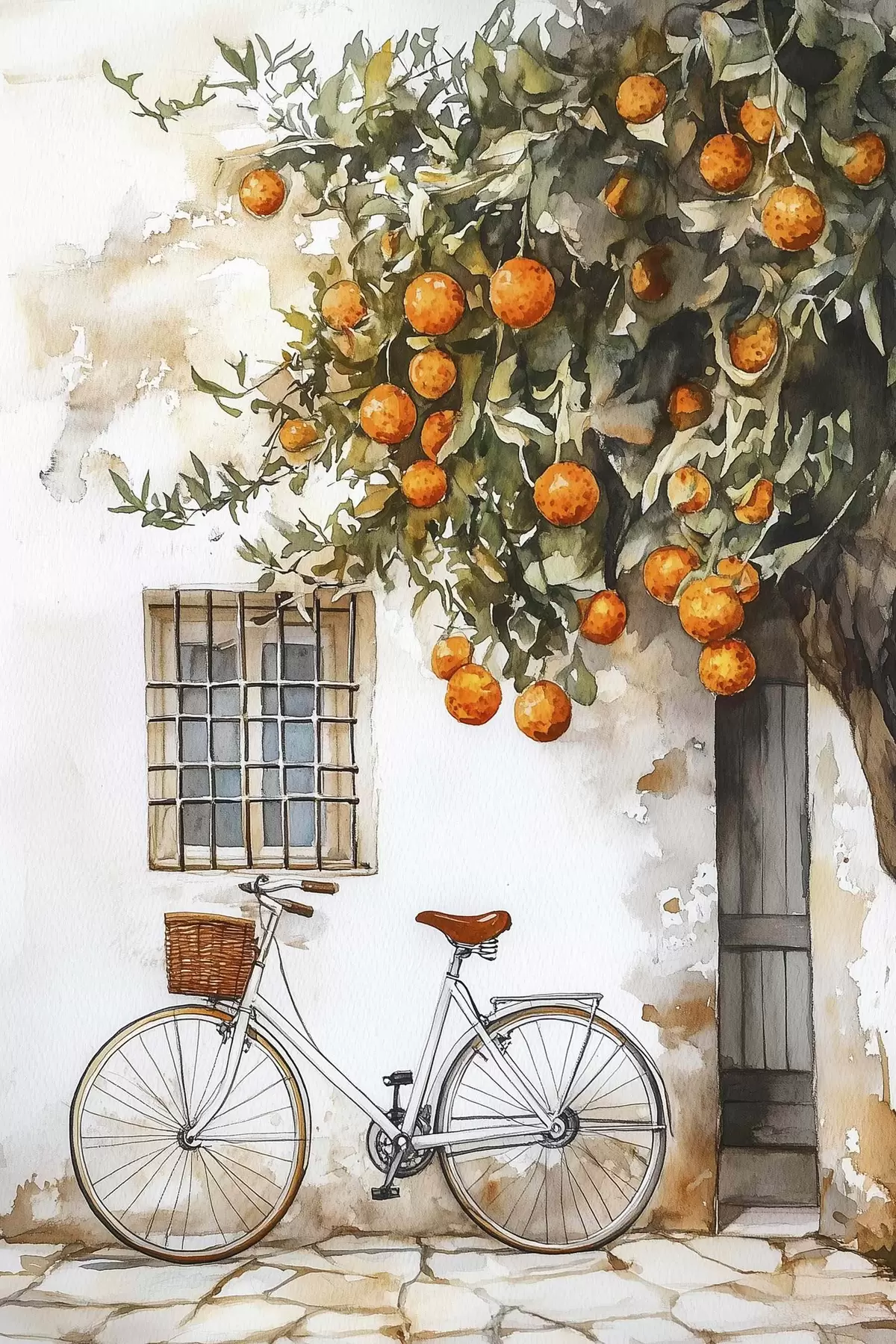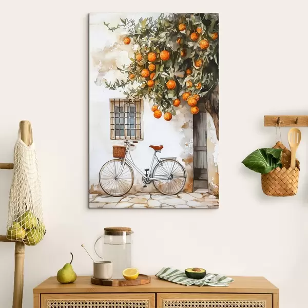 Obraz Středomořský bílý dům s pomerančovníkem a jízdním kolem Č. s44610