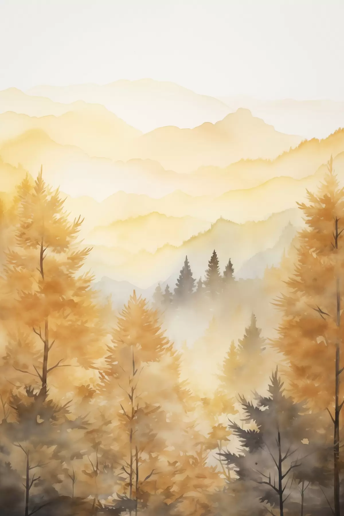 Obraz Krásný podzimní les s horami v pozadí Č. s44614