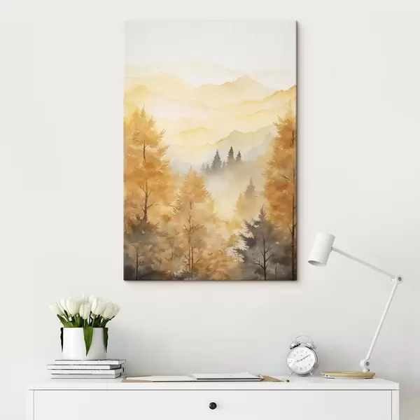 Obraz Krásný podzimní les s horami v pozadí Č. s44614