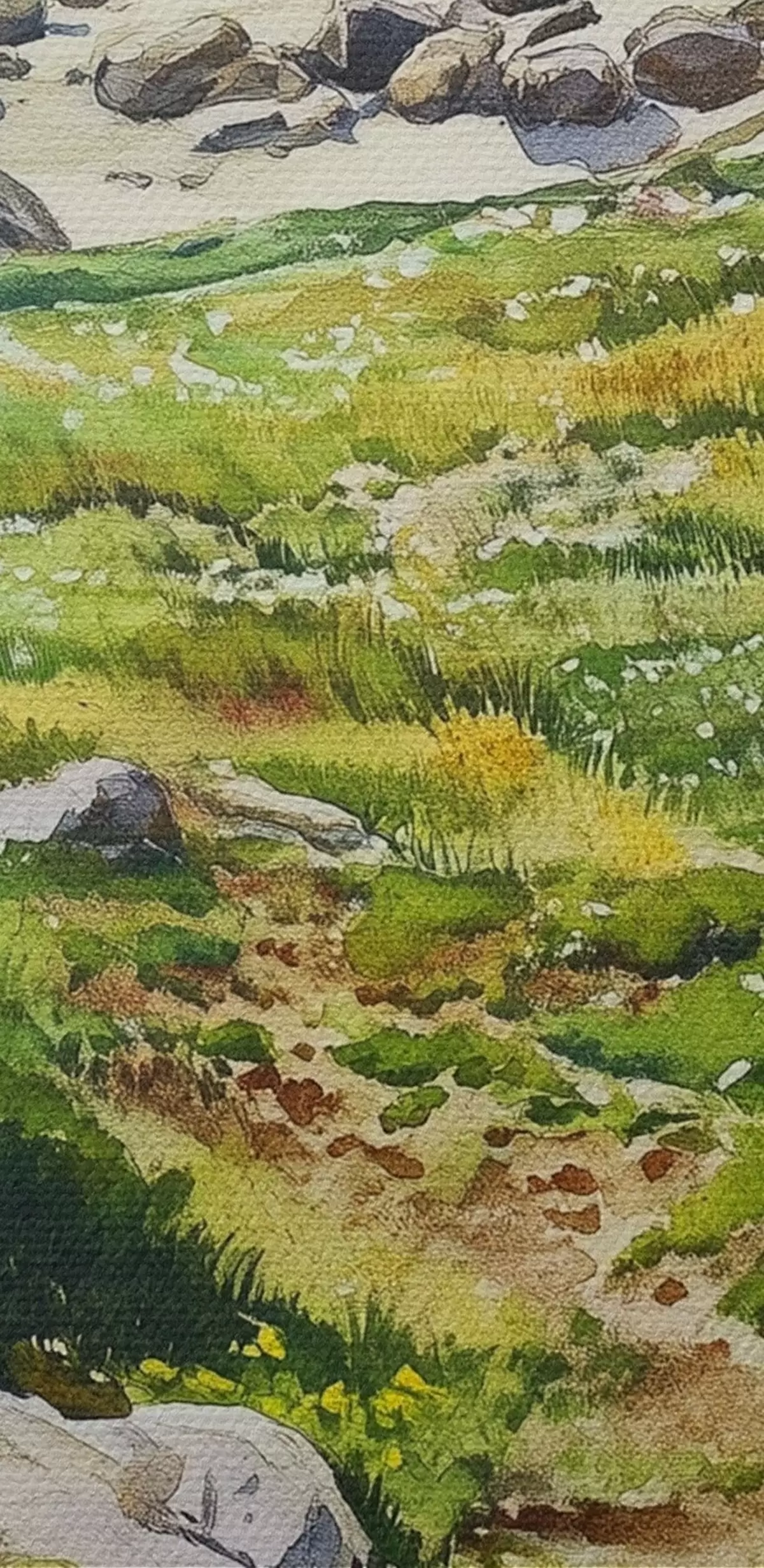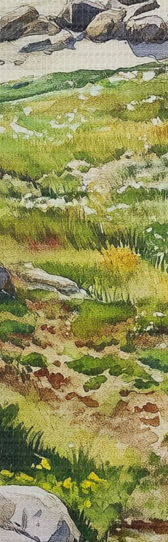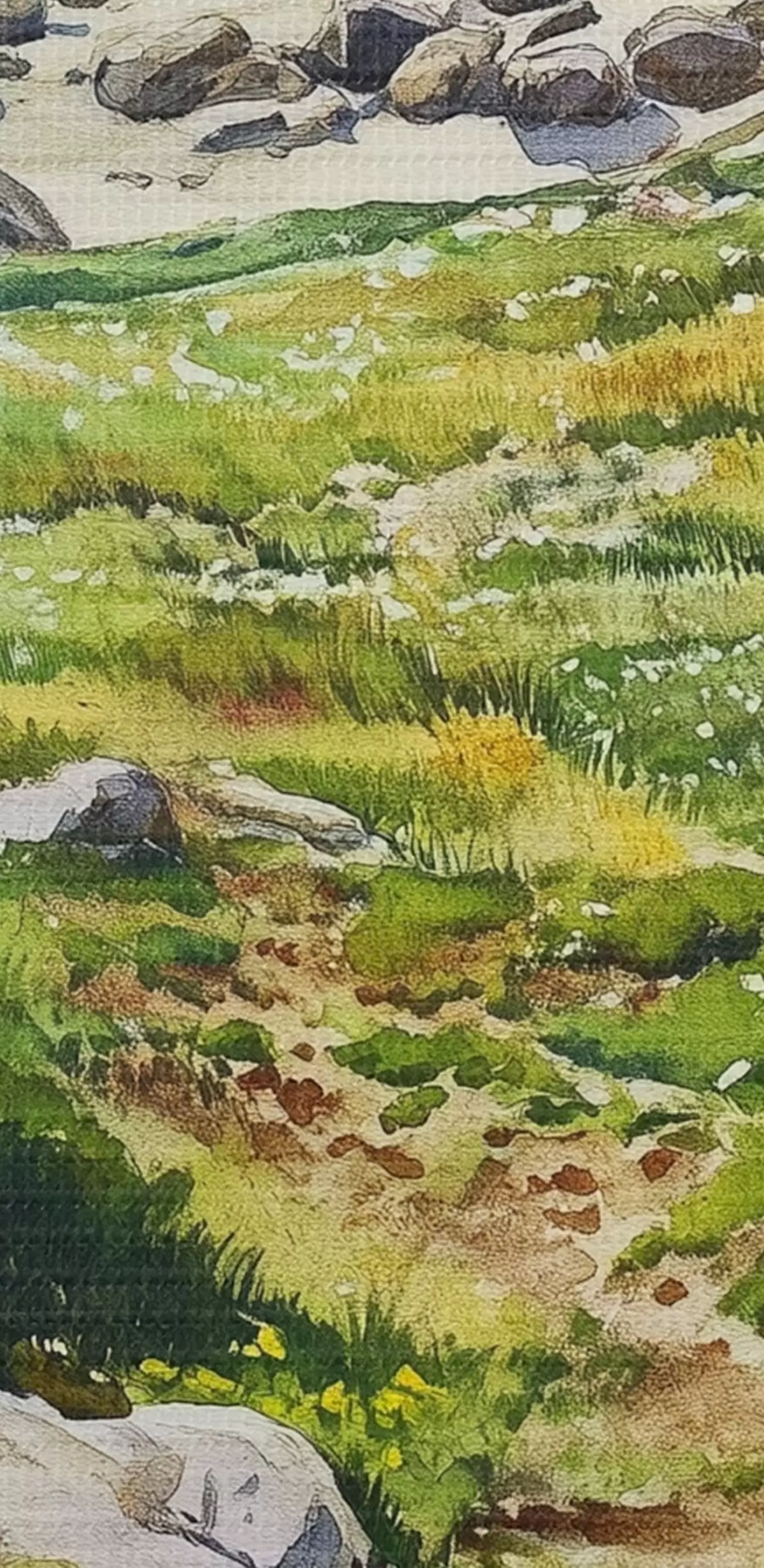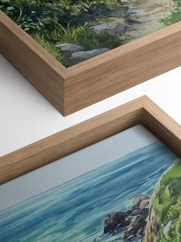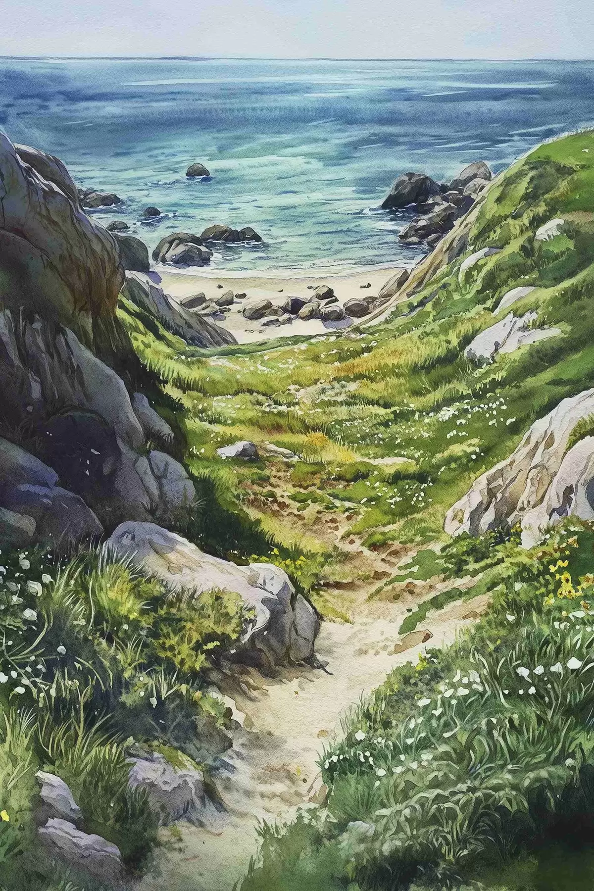 Obraz Pobřeží moře se skalami a zelenou trávou, akvarel, léto Č. s44616
