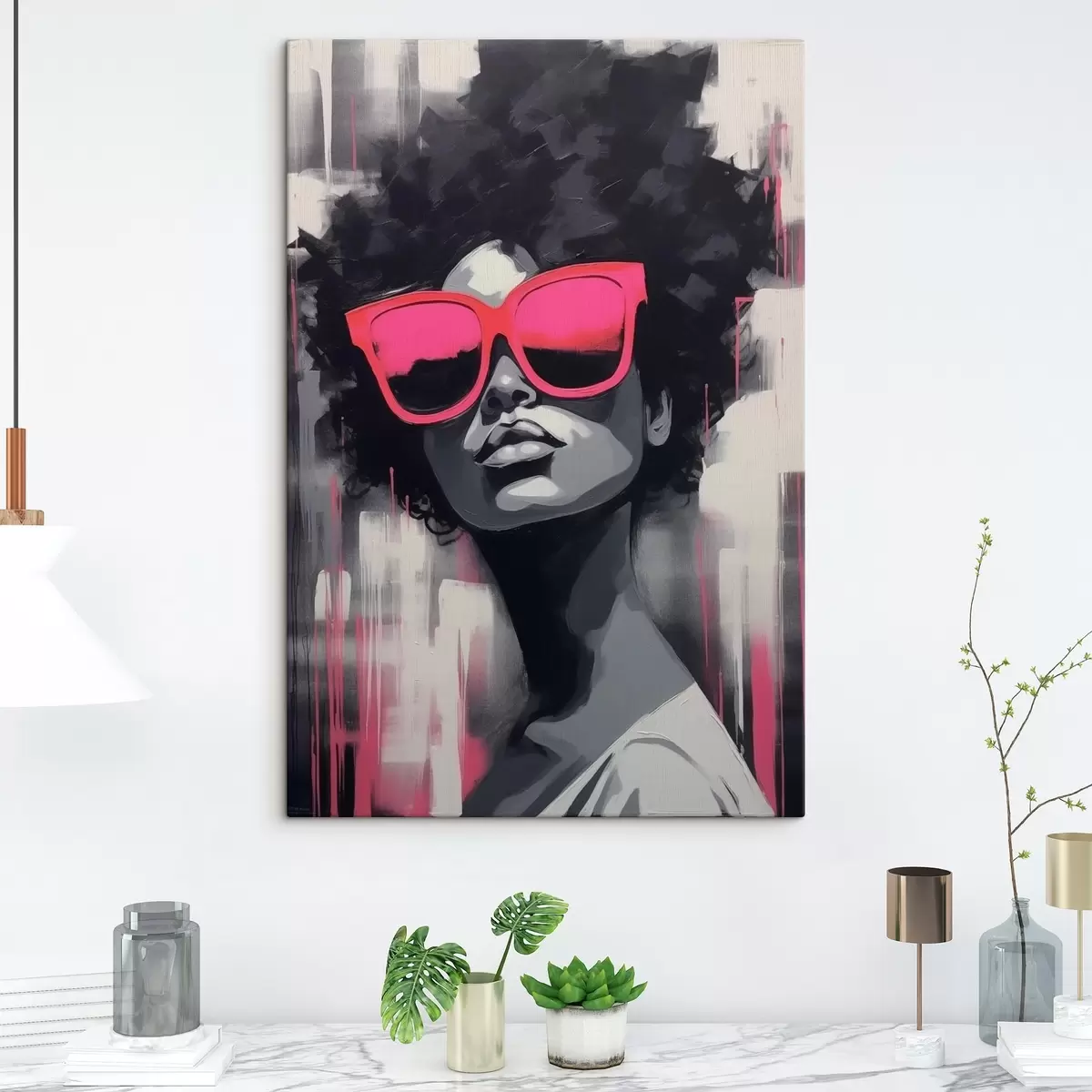 Obraz Dívka s růžovými brýlemi, černobílý styl Č. s44624