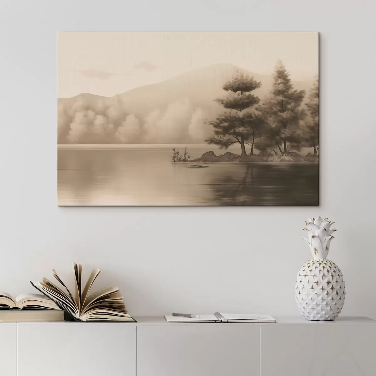 Obraz Jezero a stromy v sépiové barvě Č. s44633