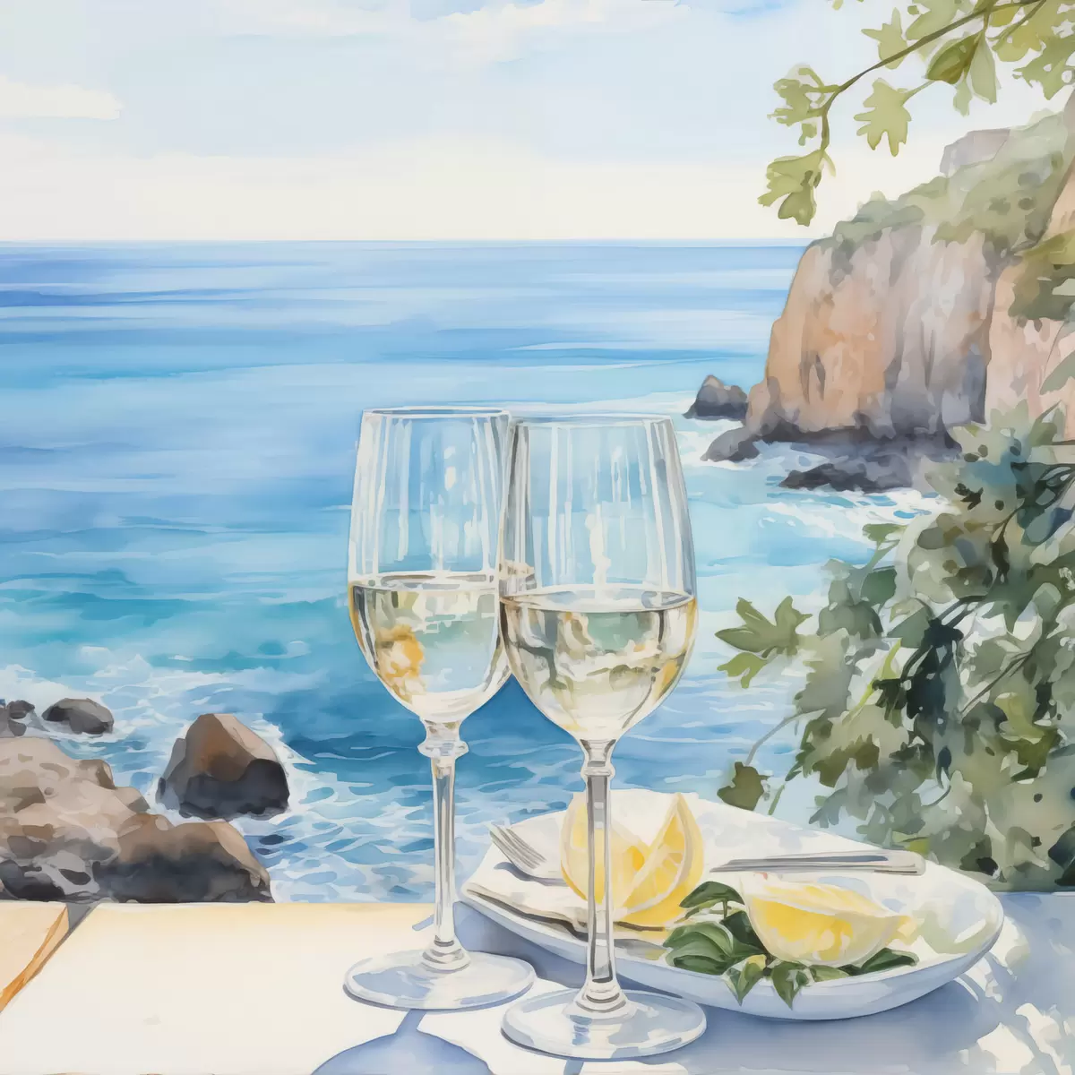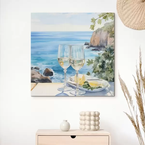 Obraz Sklenice vína na pozadí moře Č. s44644