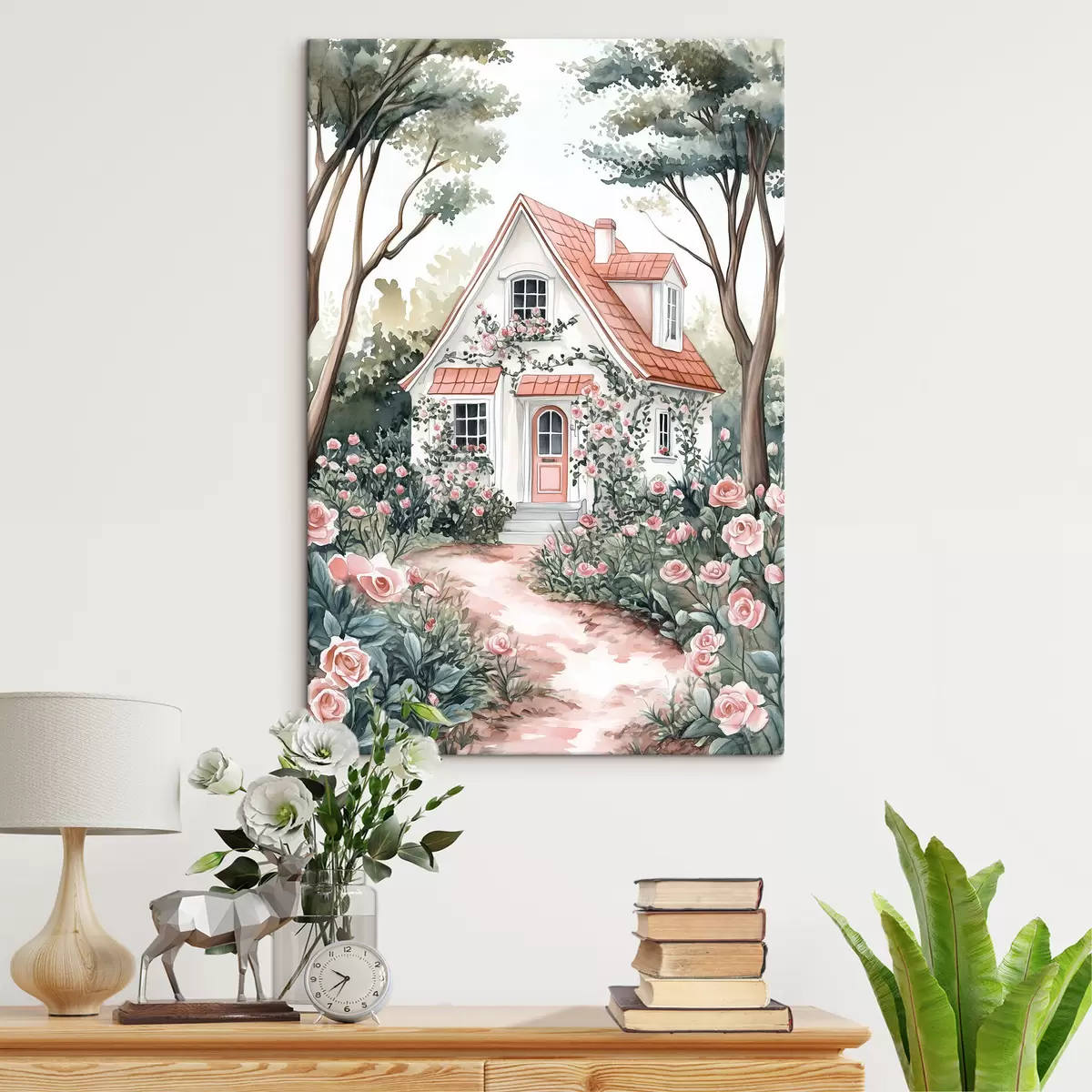 Obraz Bílý dům s růžovou zahradou v lese Č. s44716