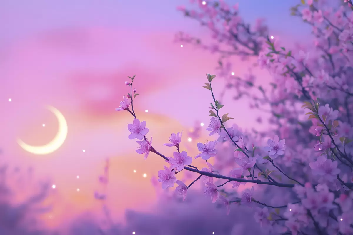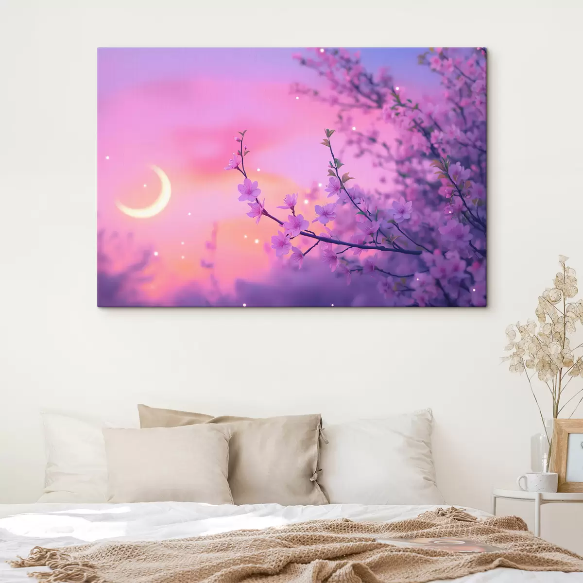 Obraz Fialová obloha s měsícem a třešněmi Č. s44717