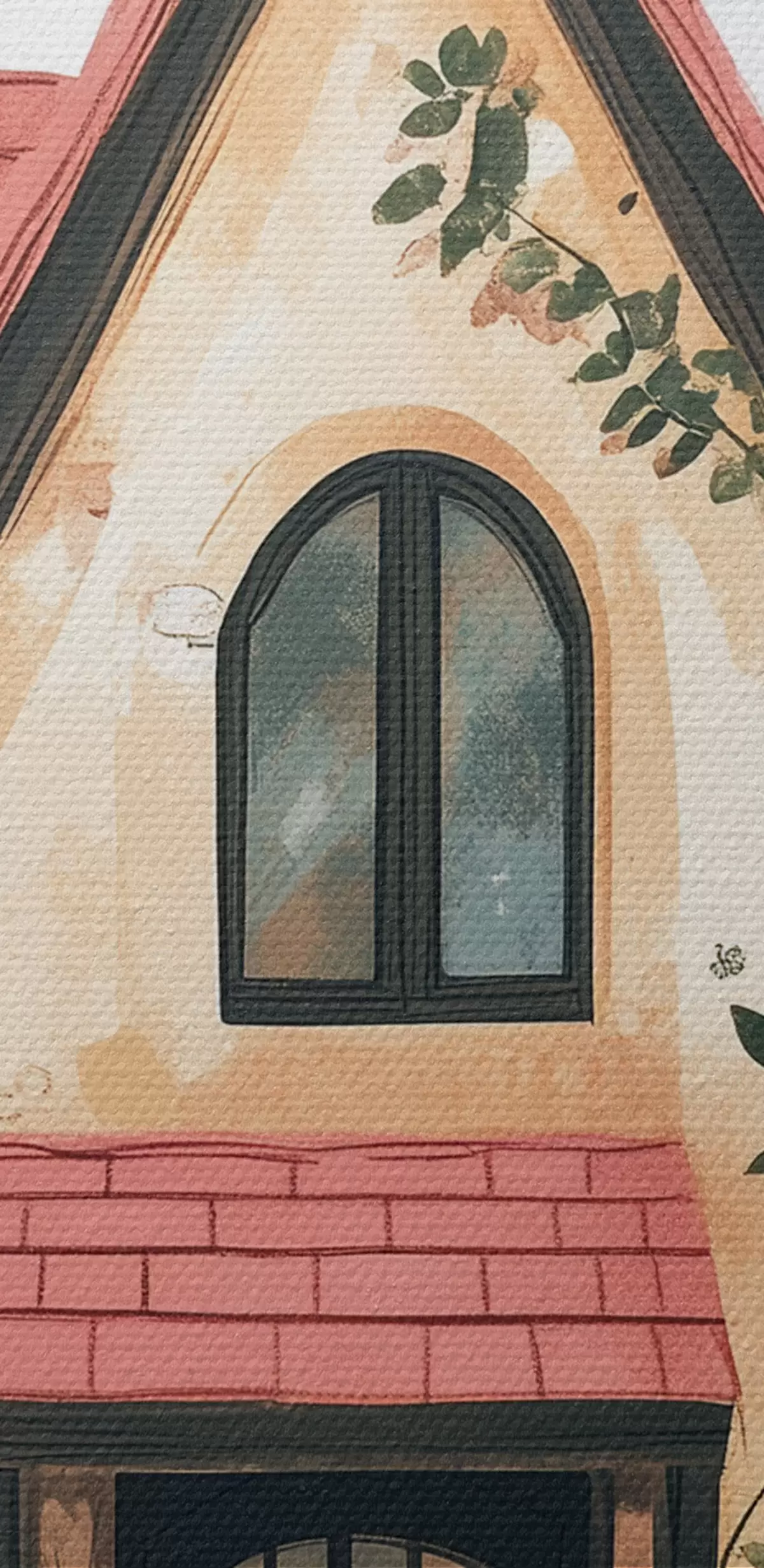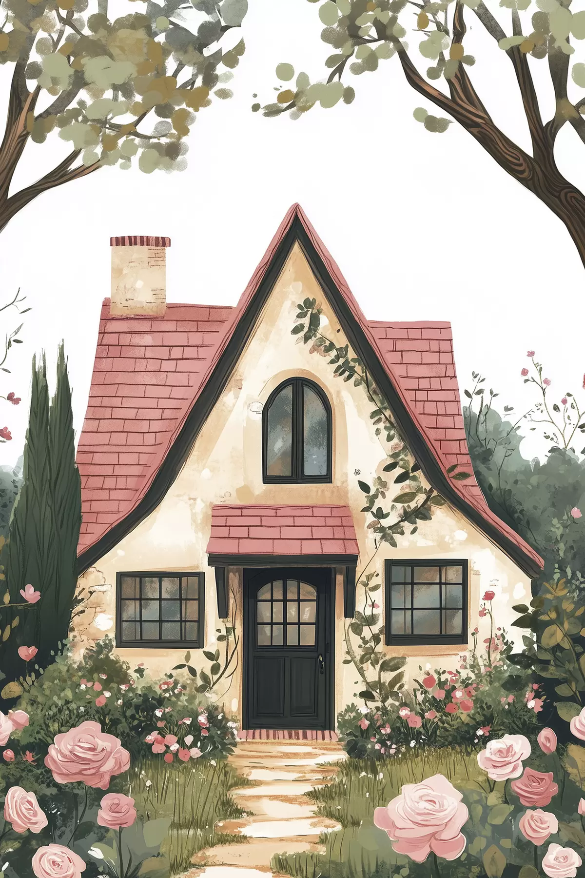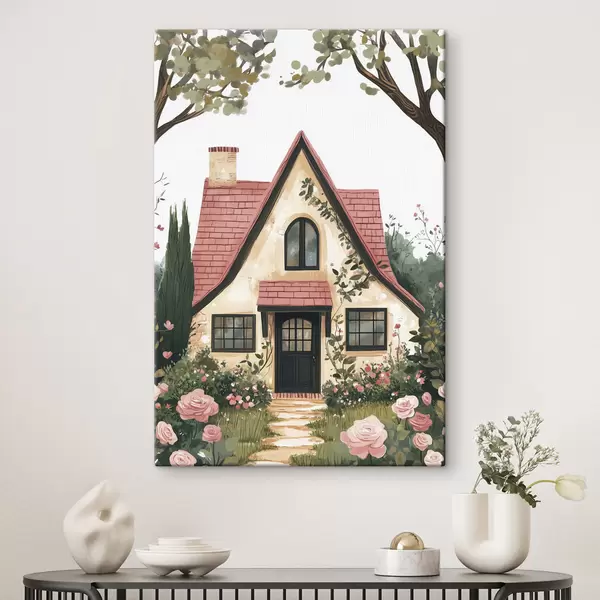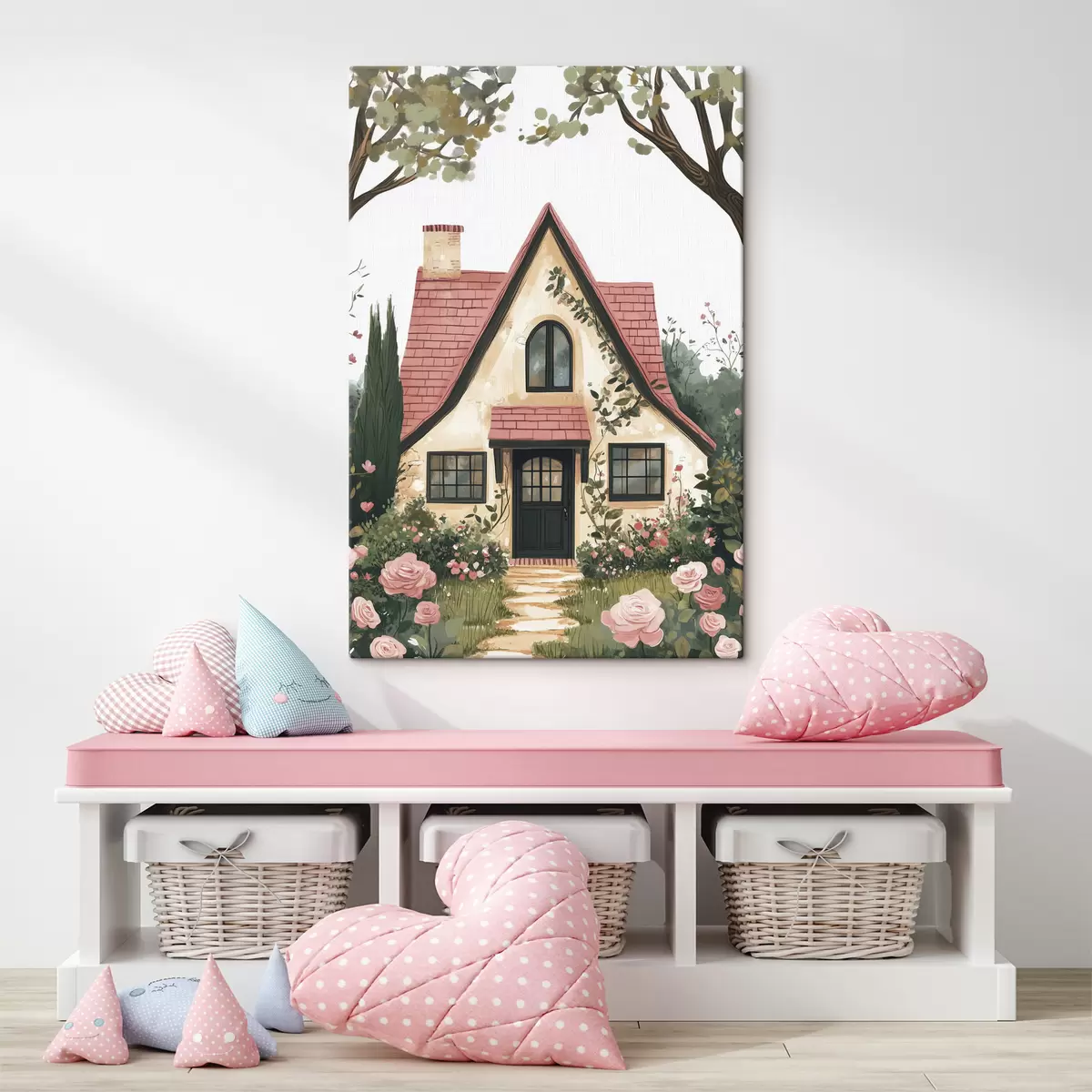 Obraz Pohádkový dům v lese, růže, pastelový styl Č. s44718