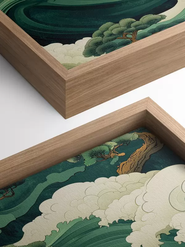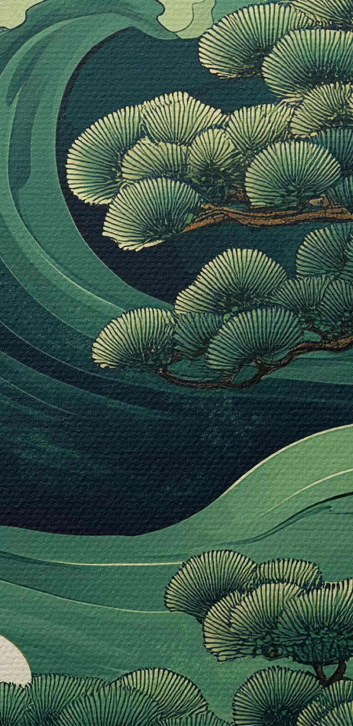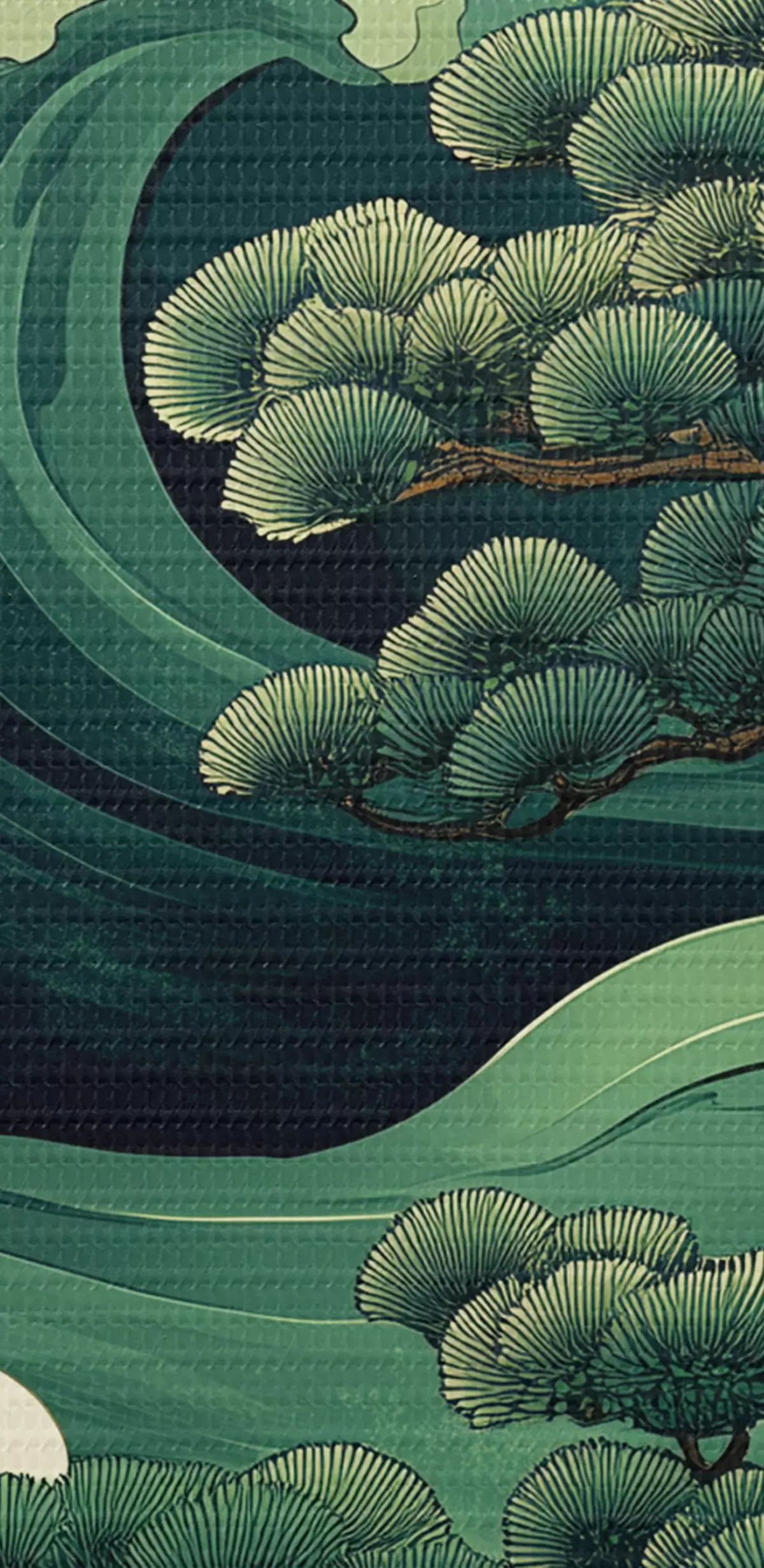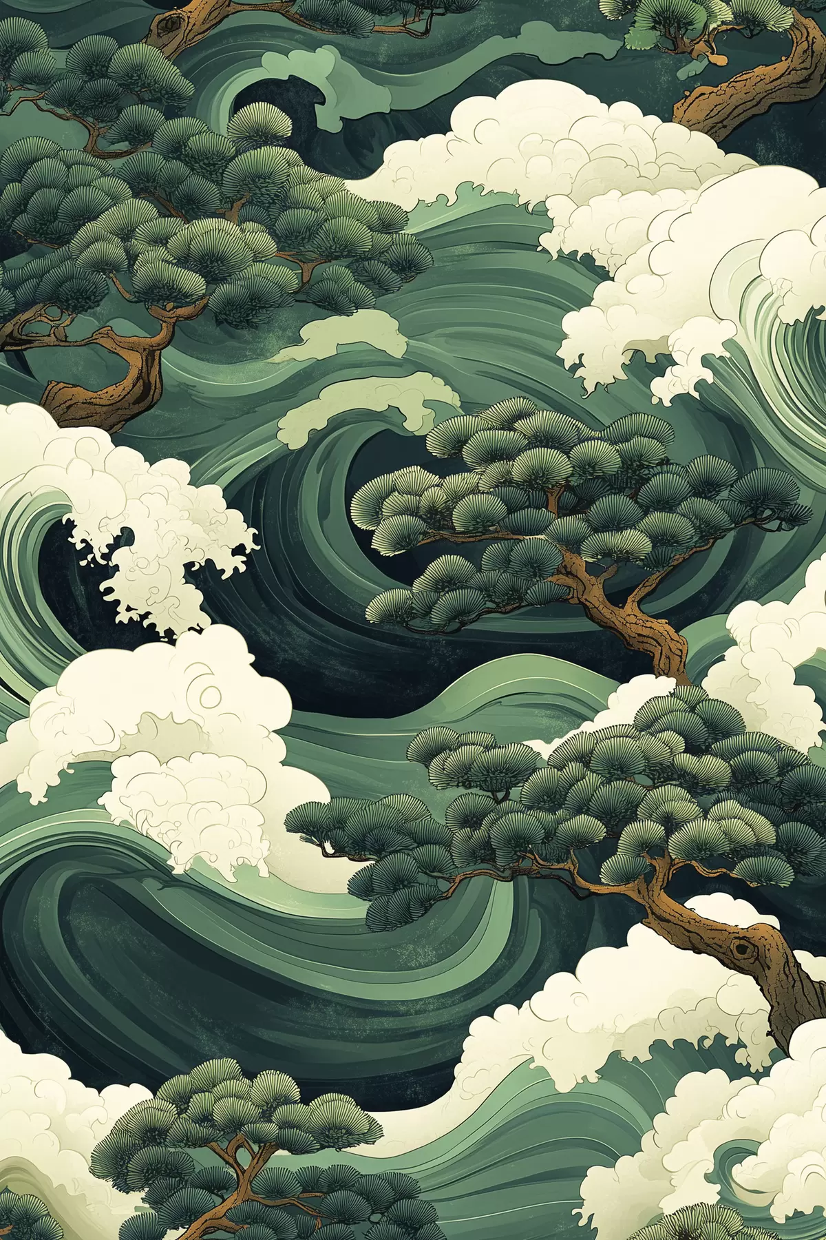Obraz Kresba v čínském stylu s mořskými vlnami a borovicemi Č. s44719