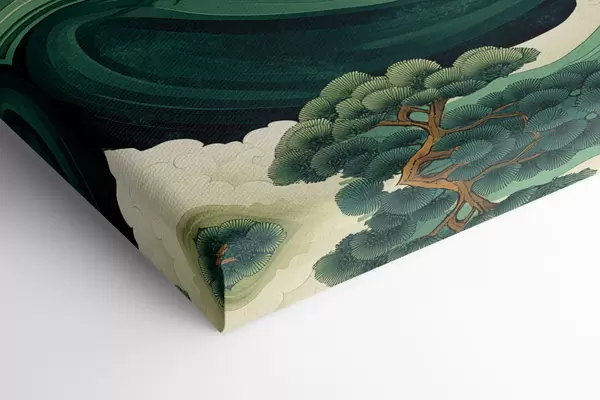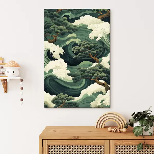 Obraz Kresba v čínském stylu s mořskými vlnami a borovicemi Č. s44719