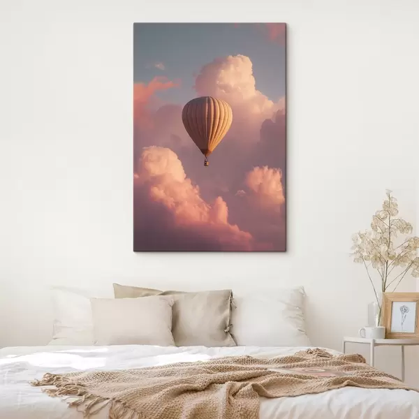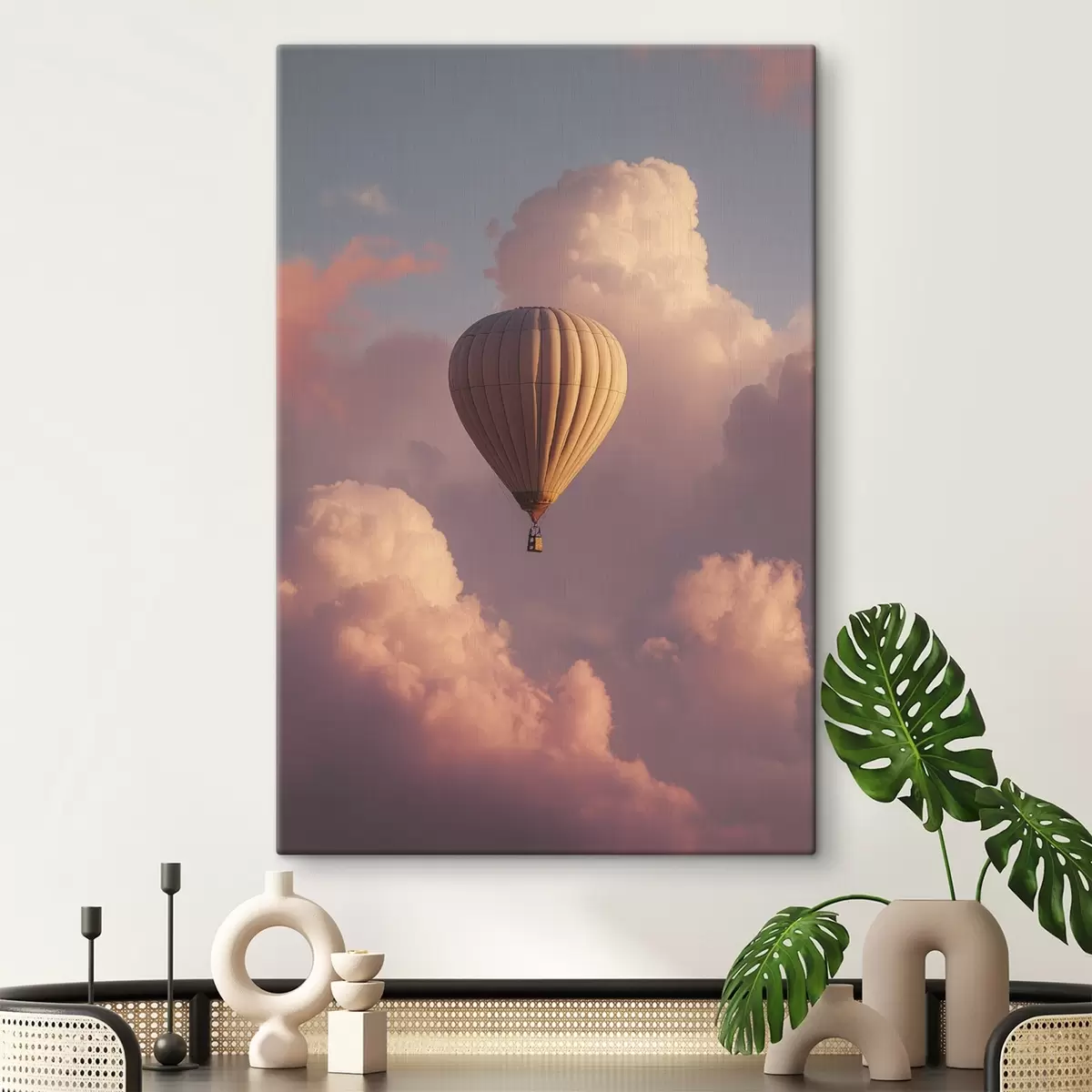 Obraz Vzdušný balón na obloze se západem slunce a mraky Č. s44790