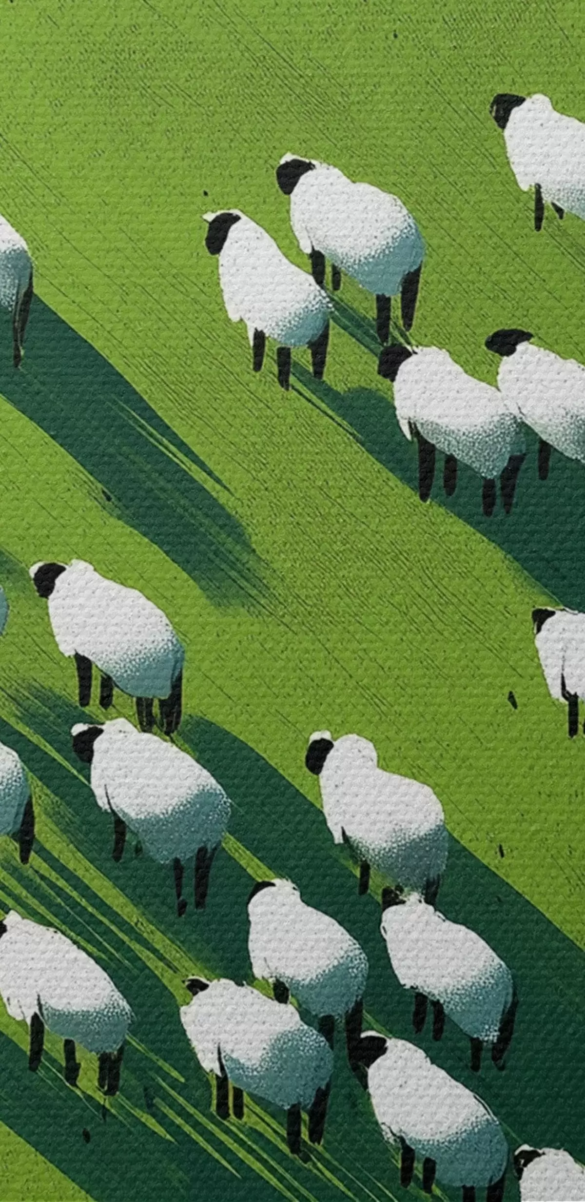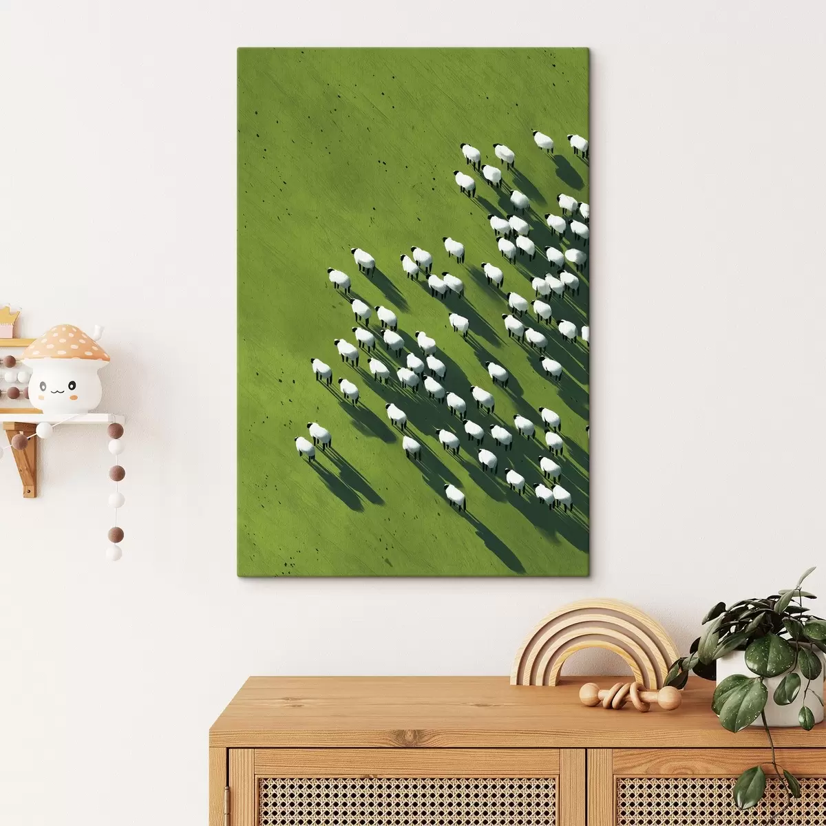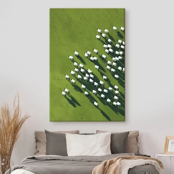 Obraz Zelené pole se stádem ovcí, abstrakce, letecký pohled Č. s44793
