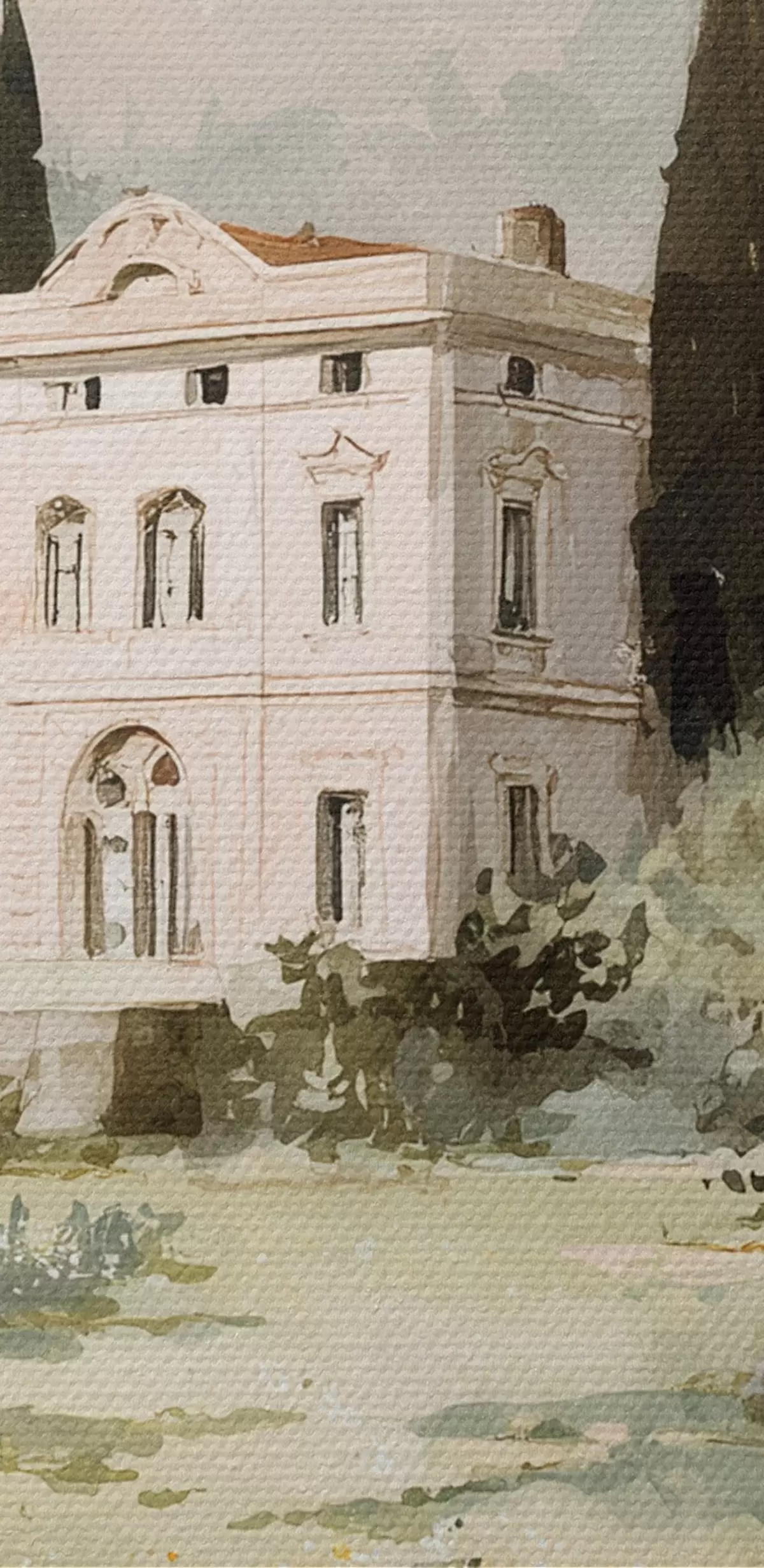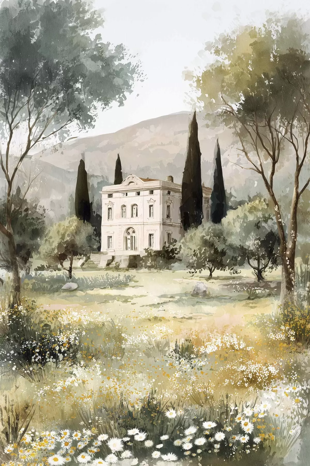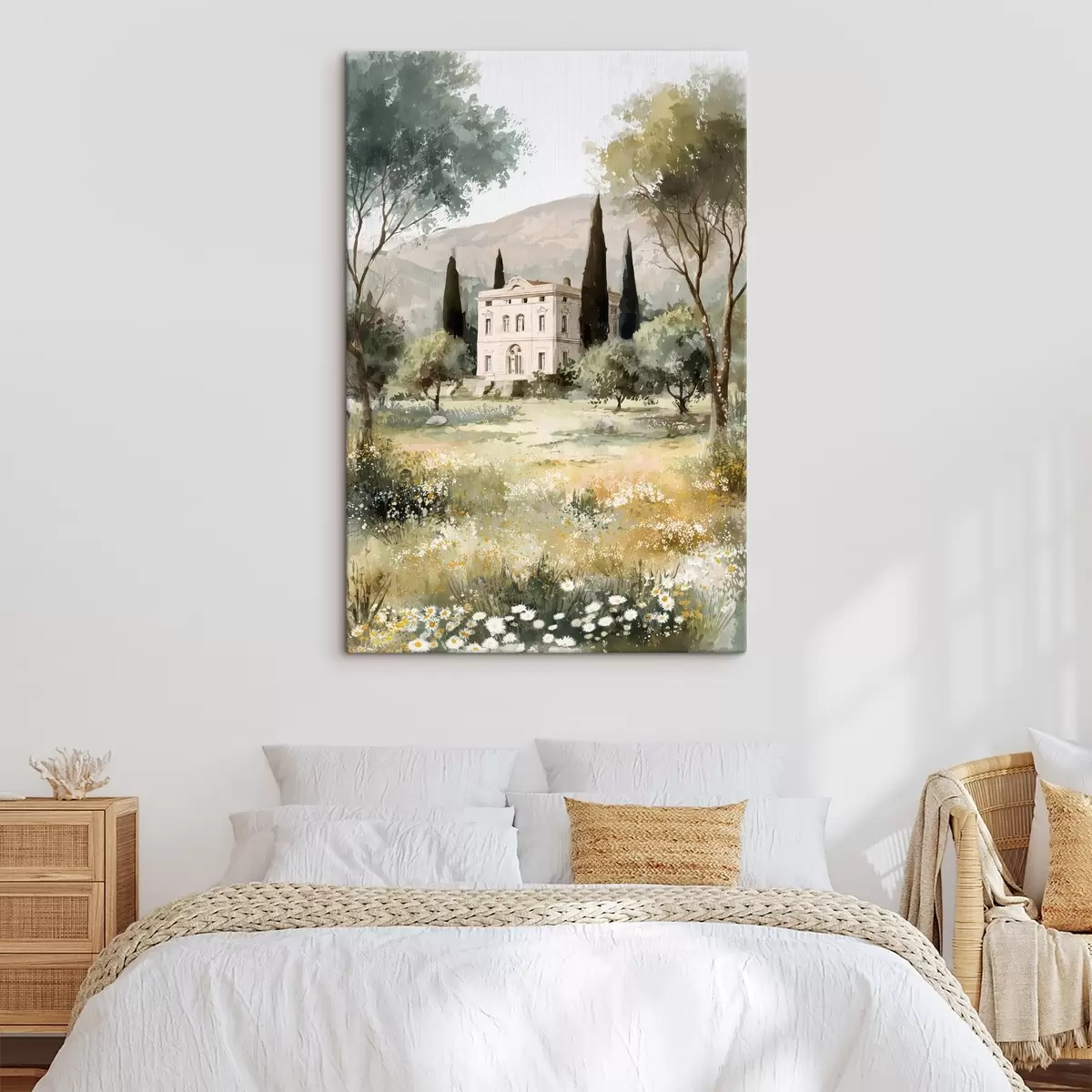 Obraz Středomořská vesnice s bílým domem obklopeným zahradou Č. s44796