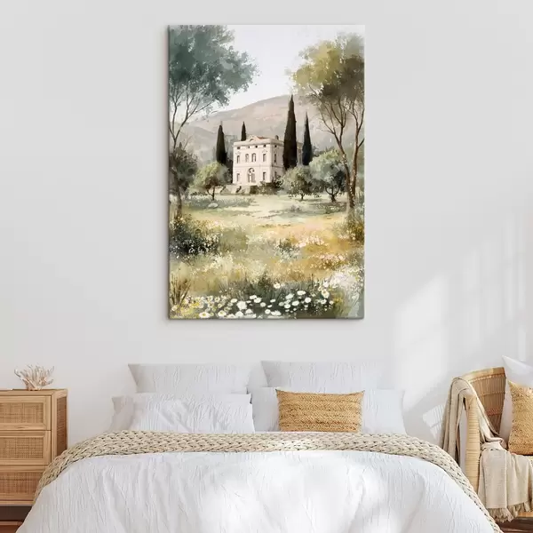 Obraz Středomořská vesnice s bílým domem obklopeným zahradou Č. s44796