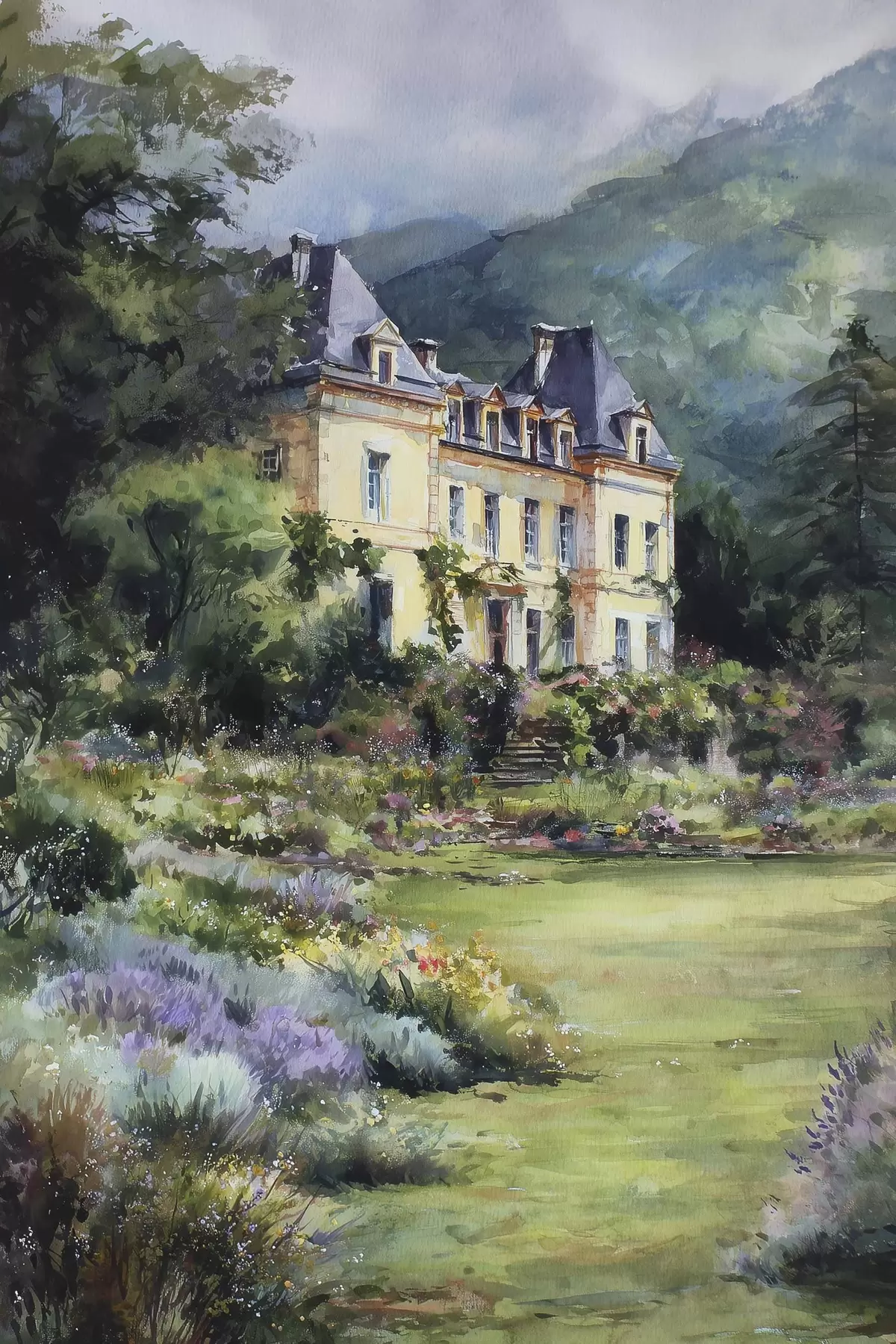 Obraz Francouzský zámek obklopený zahradou s levandulí Č. s44797