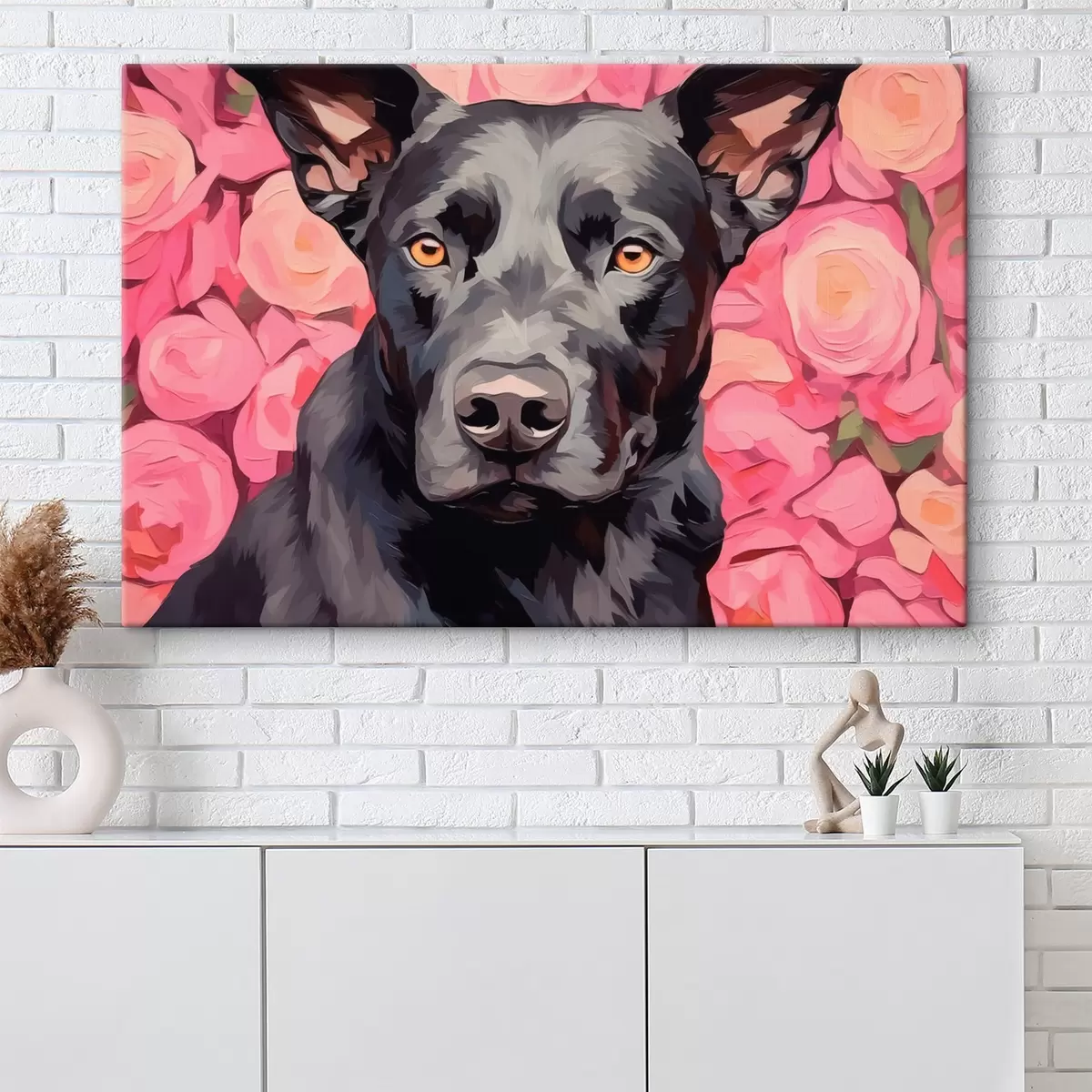 Obraz Černý pes na abstraktním pozadí růží Č. s44817