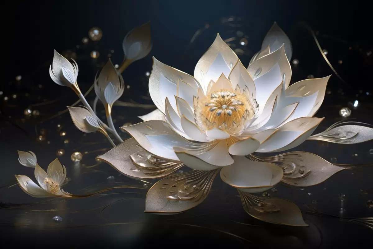 Obraz Lotos s elegantními vzory na tmavém pozadí Č. s44841