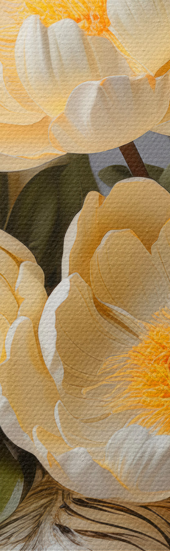 K objednání jsou k dispozici tři typy materiálu: Economic Canvas - hustý a odolný materiál pro digitální tisk, identický s malířským plátnem, voděodolný povrch, realistická reprodukce detailů, středně zrnitý materiál. Prémiové plátno - struktura připomíná malířské plátno (proplétané drobné nitě). Měkká, detailní reprodukce obrazu na matném povrchu. Eco-Premium - vysoce kvalitní tkanina ze 100% bavlny. Díky přírodním bavlněným vláknům je materiál trvanlivý a odolný proti opotřebení. Vynikající reprodukce barev a detailů.