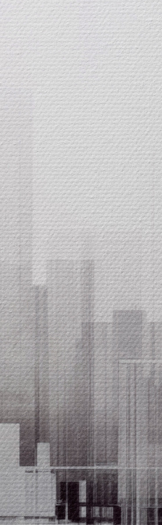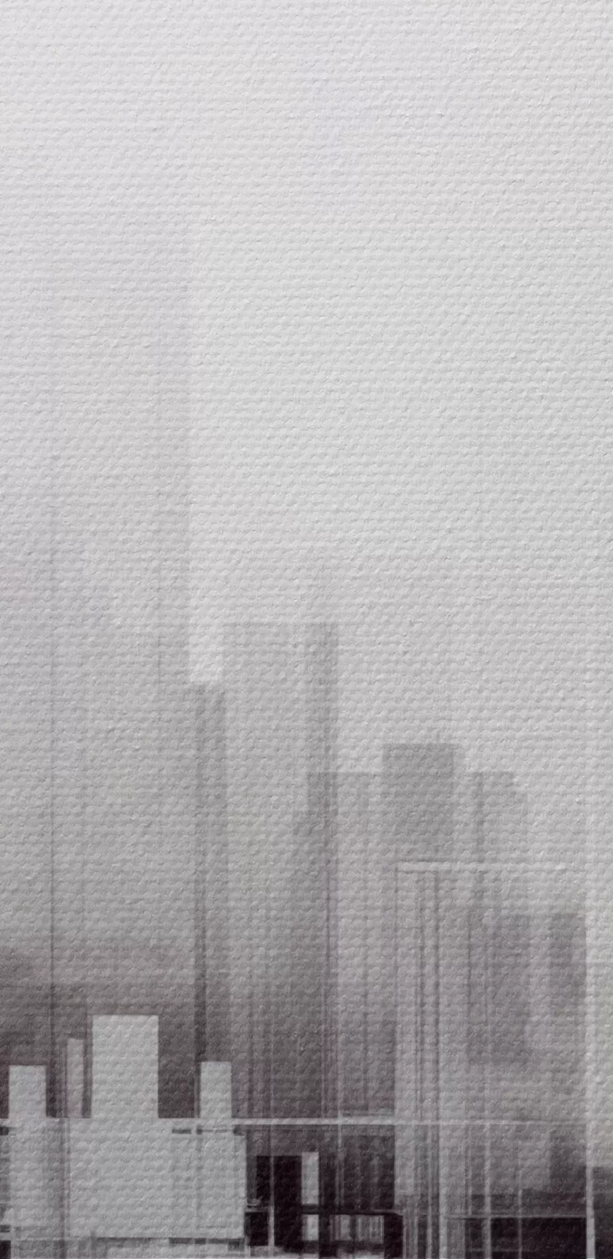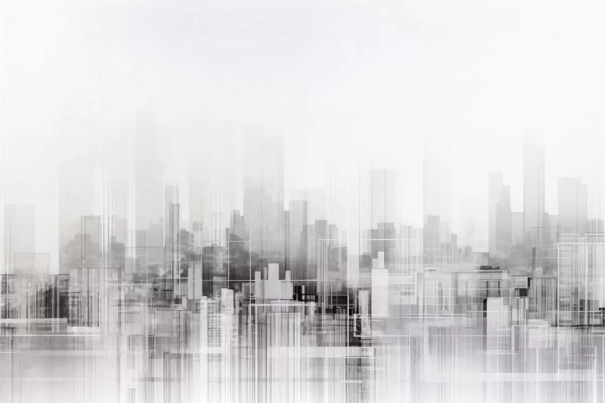 Obraz Texturovaná minimalistická městská krajina s vysokými budovami a mrakodrapy v siluetě na bílé obloze Č. s44863