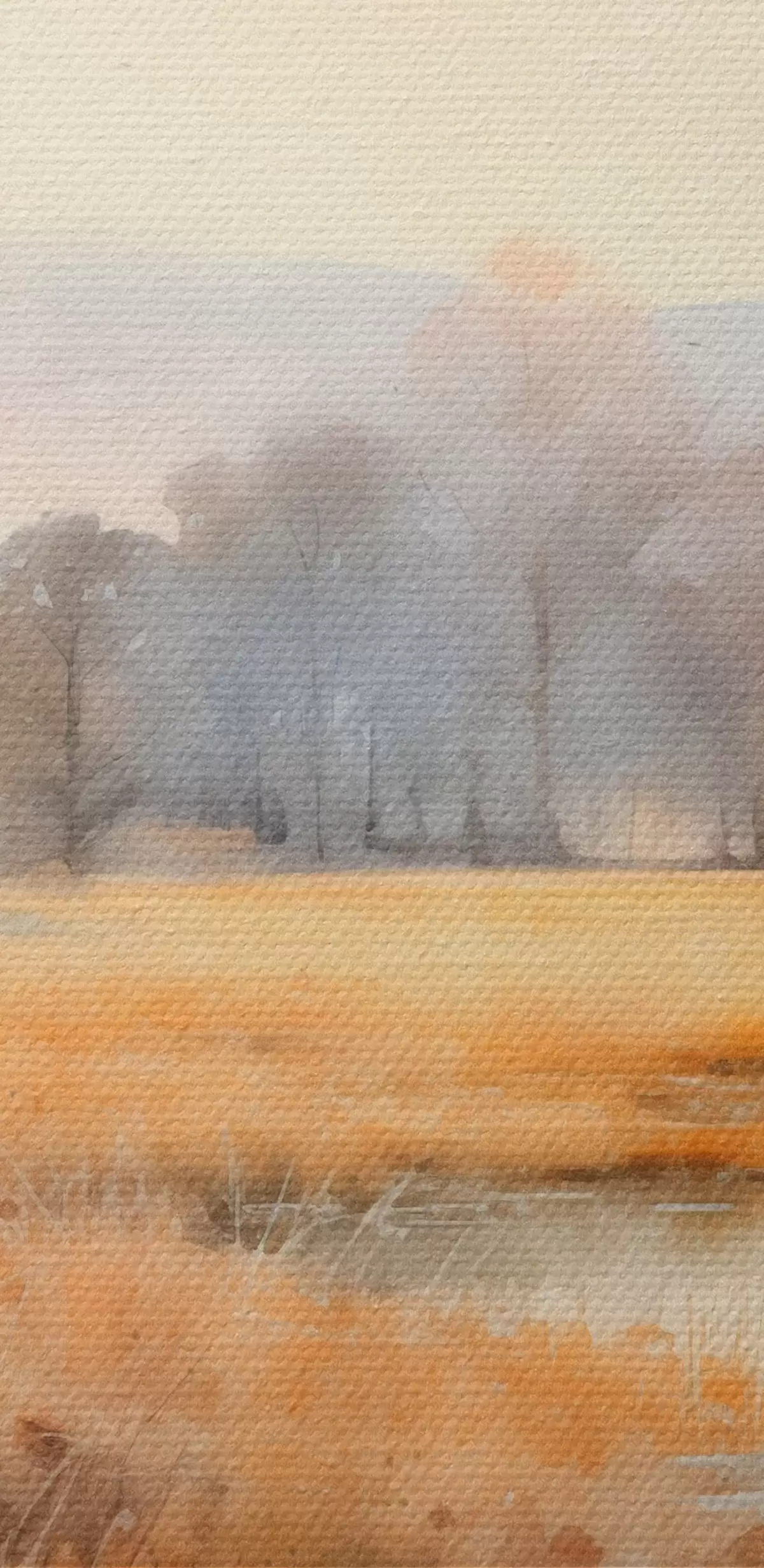 Obraz Klidná krajinomalba s texturou imitující rákosí a holé stromy, klidnou vodu pod oblohou Č. s44867