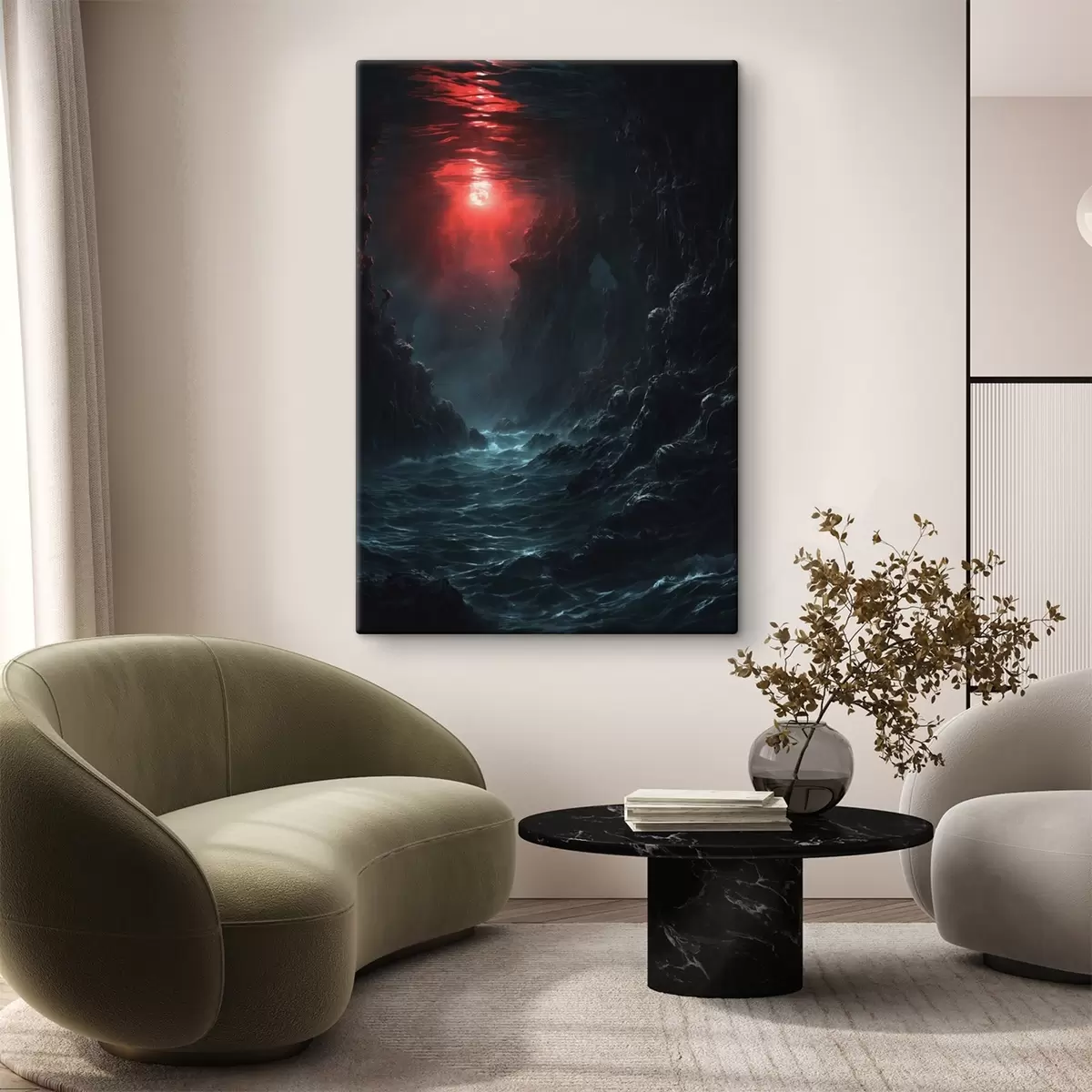 Obraz Temná mořská soutěska s červeným světlem shora Č. s44870