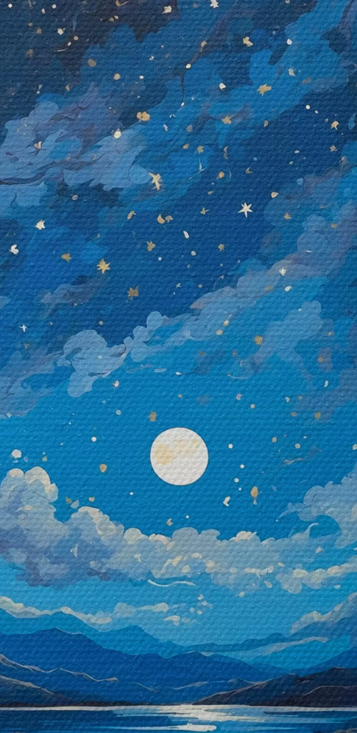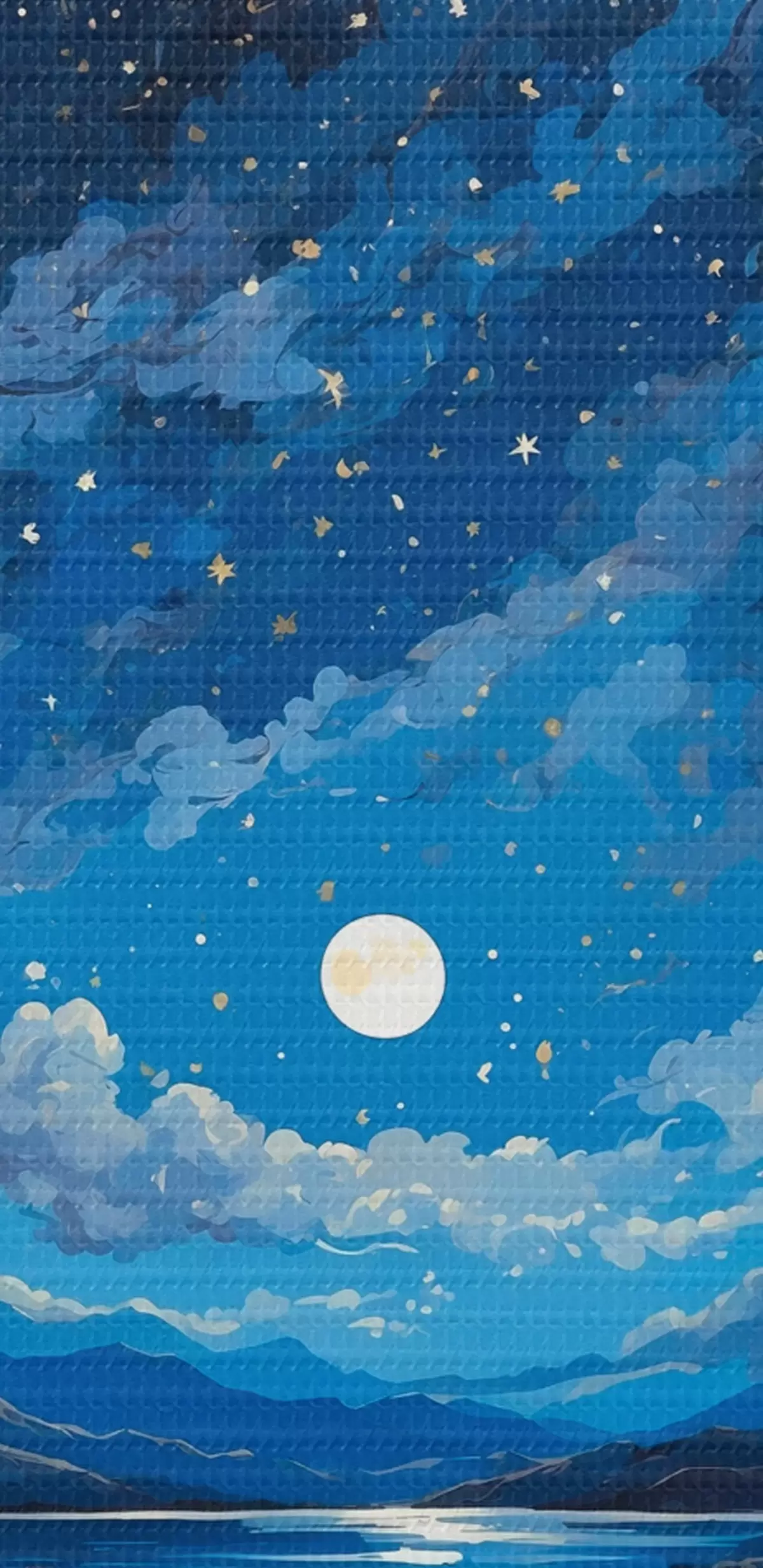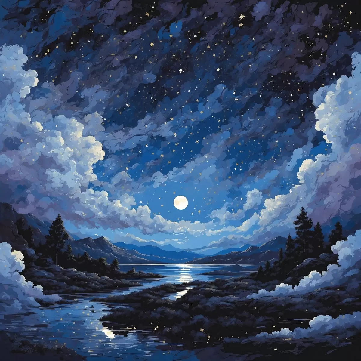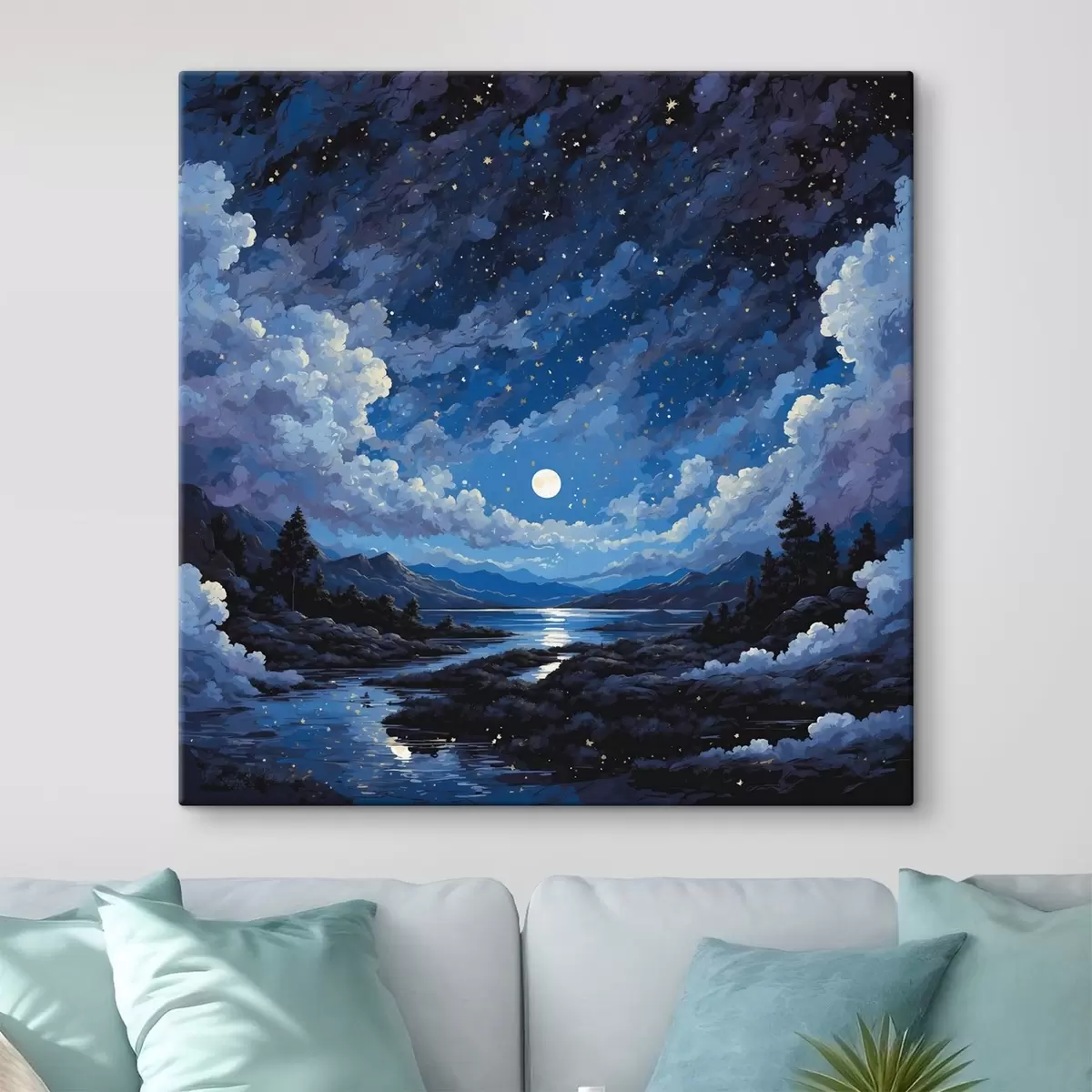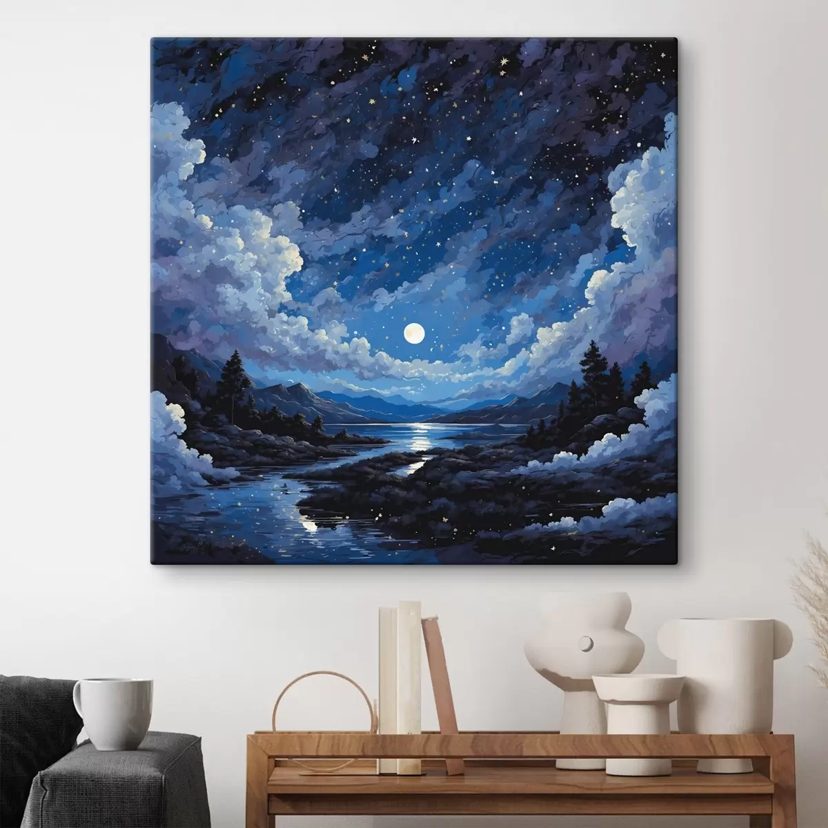 Obraz Noční obloha s měsícem a hvězdami nad horskou krajinou Č. s44872