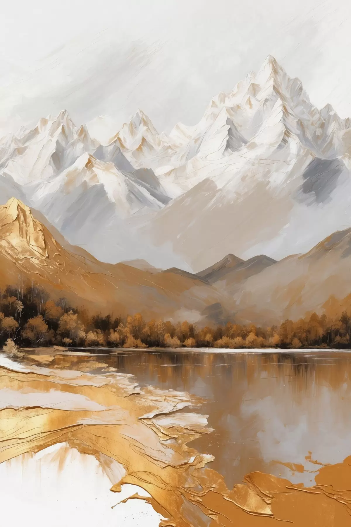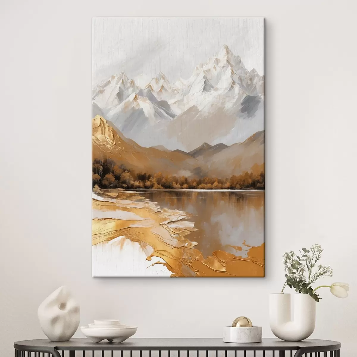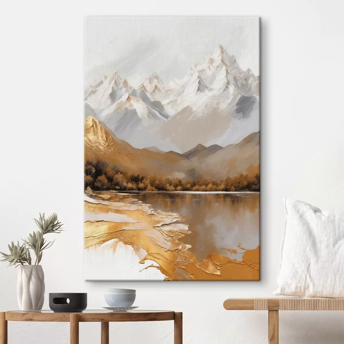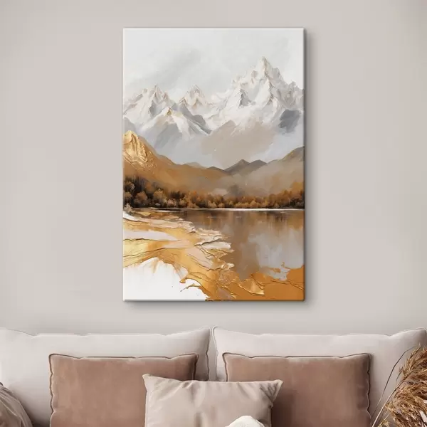 Obraz Horská krajina s jezerem v teplých barvách Č. s44877