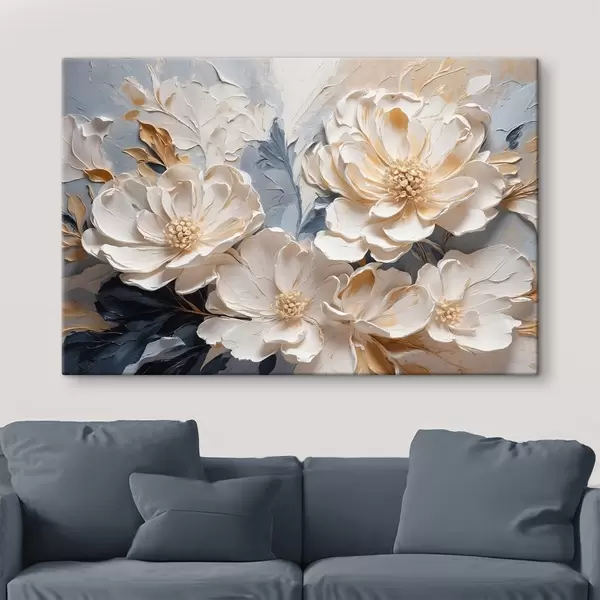 Obraz Objemné krémové pivoňky na světle modrém pozadí Č. s44880