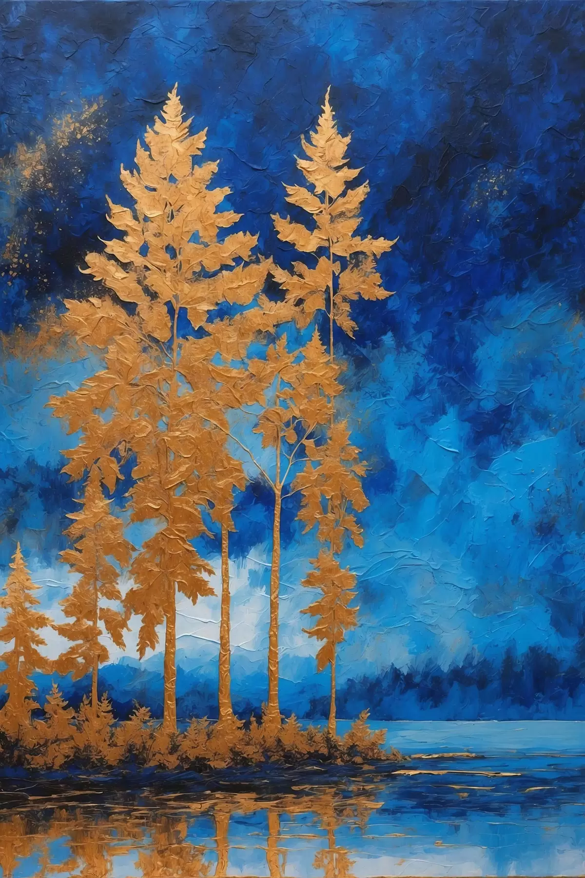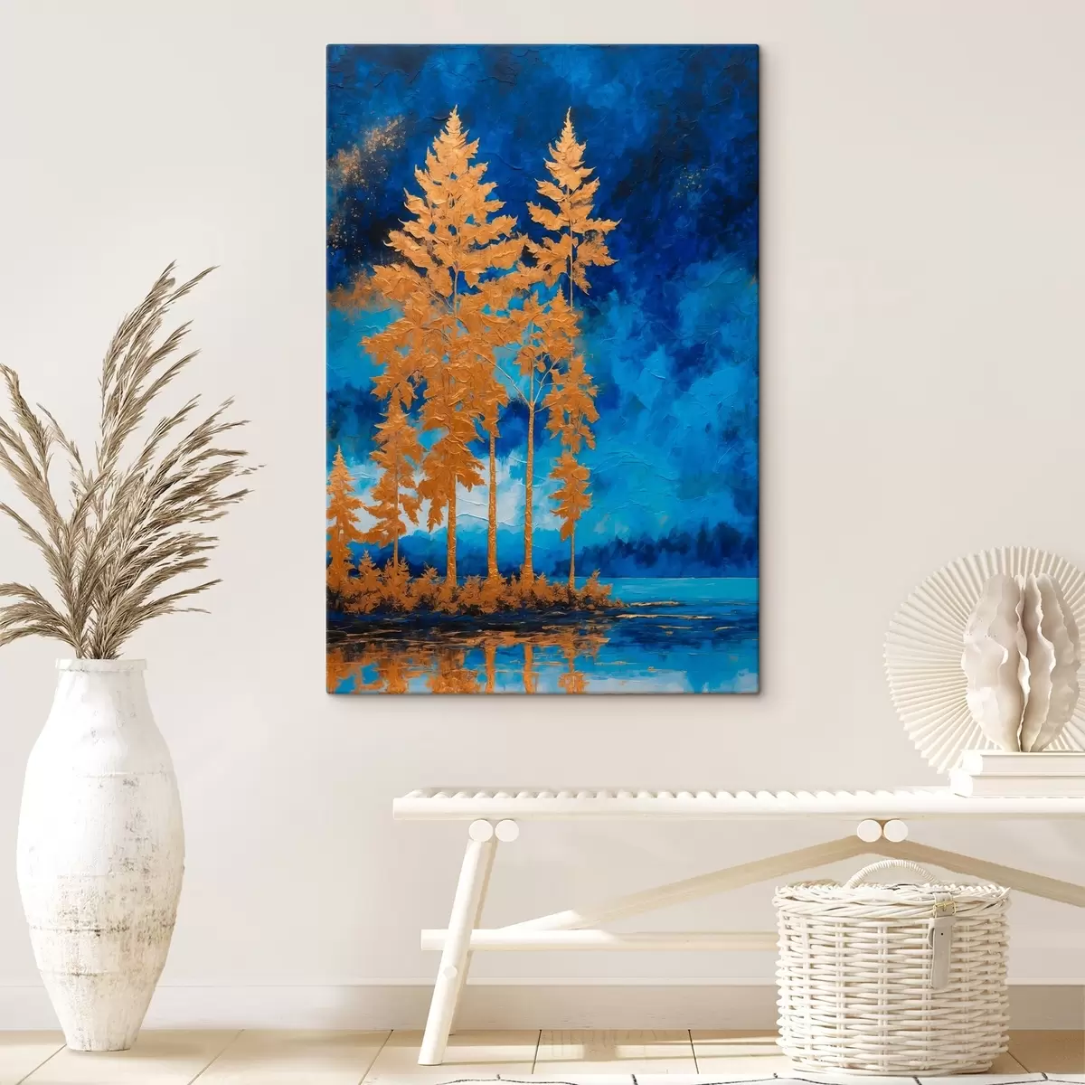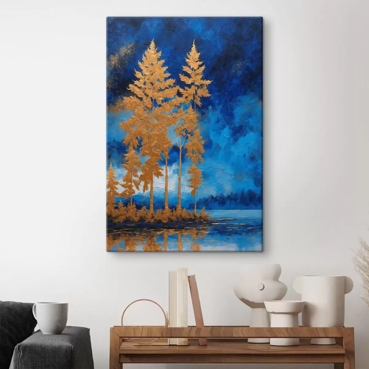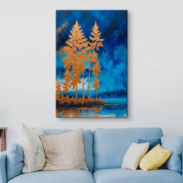 Obraz Stromy na pozadí noční oblohy v modrých tónech Č. s44888